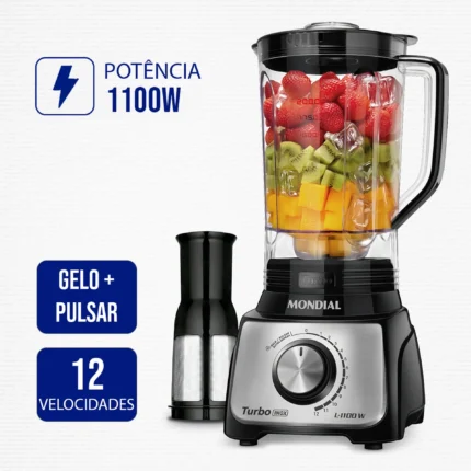 Liquidificador Mondial Turbo L-1100 3L 12 Velocidades 1100W Filtro – Preto/Inox – 110 Volts