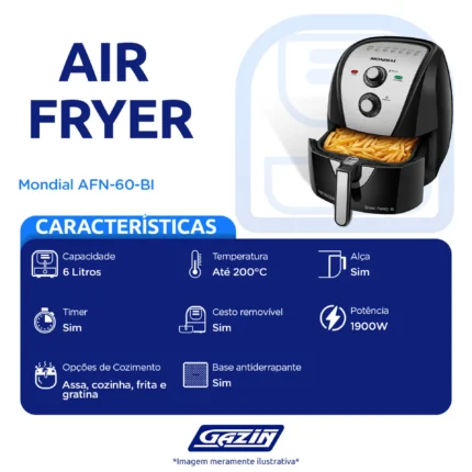 Fritadeira Elétrica Air Fryer Mondial AFN-60-BI 6L 1900W – Preto/Inox – 220 Volts