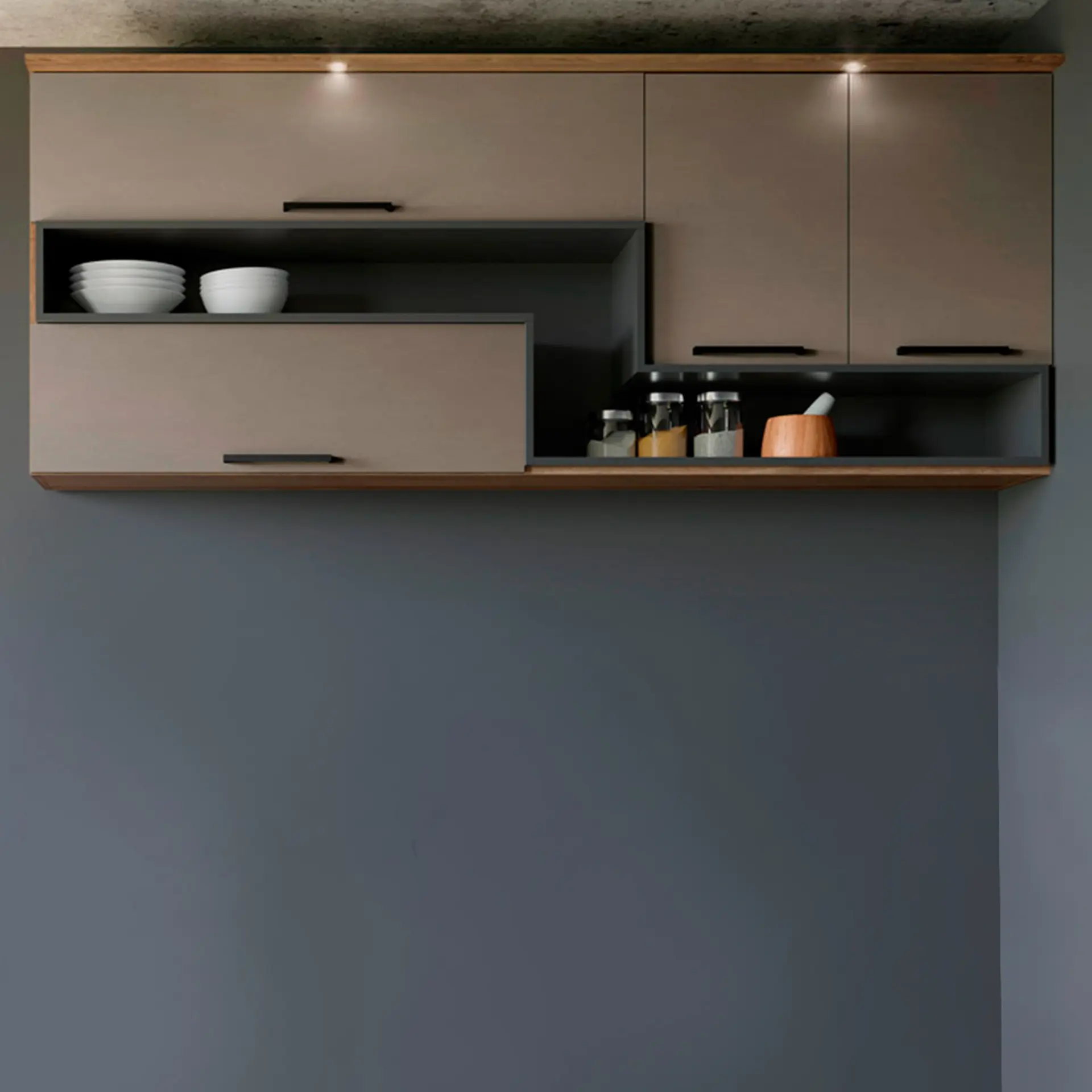 Armário Aéreo 2 Portas 80 cm Simone Mendes Nesher - Carvalho Greige