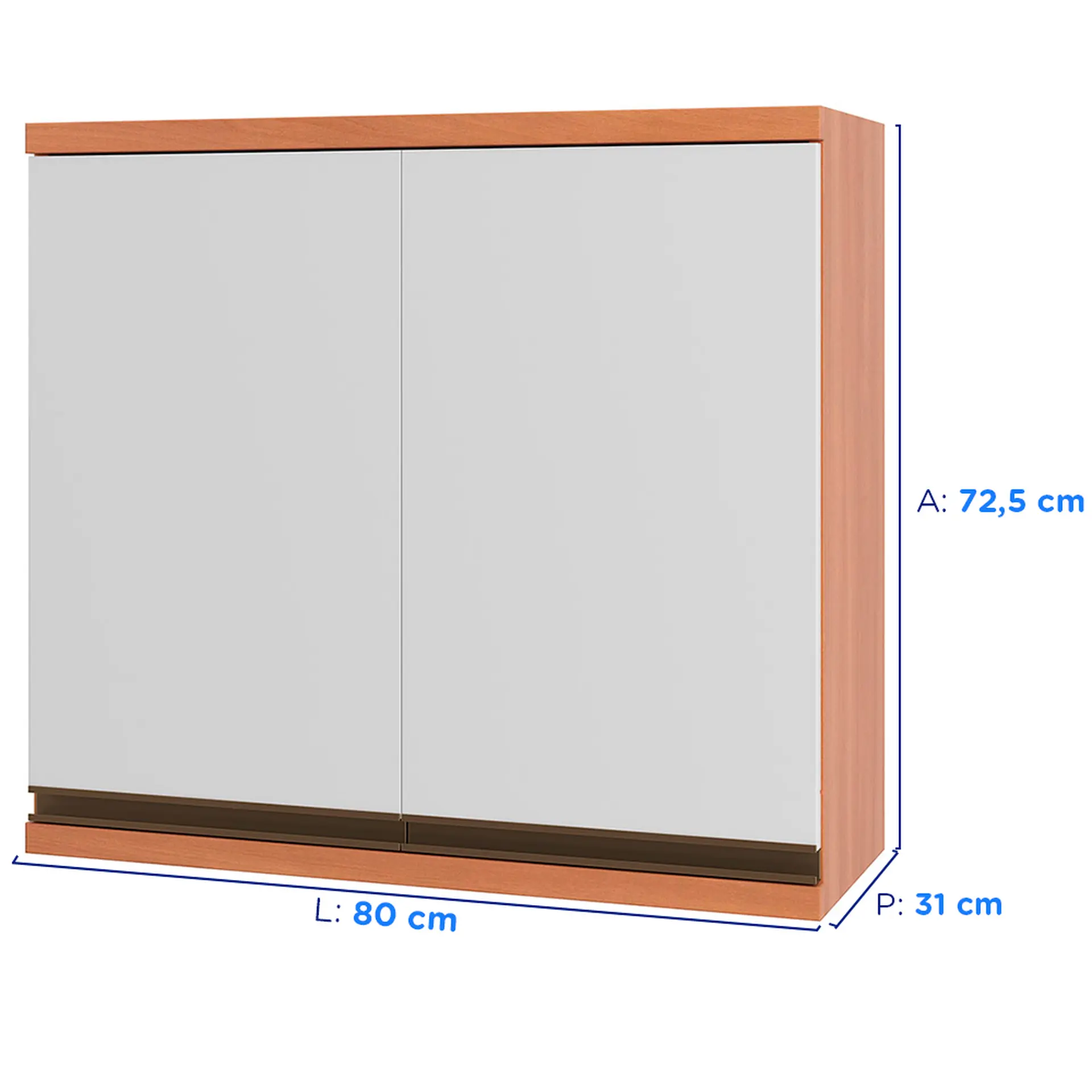 Armário Aéreo 80cm 2 Portas MDP Macadamia Telasul – Freijo/Branco