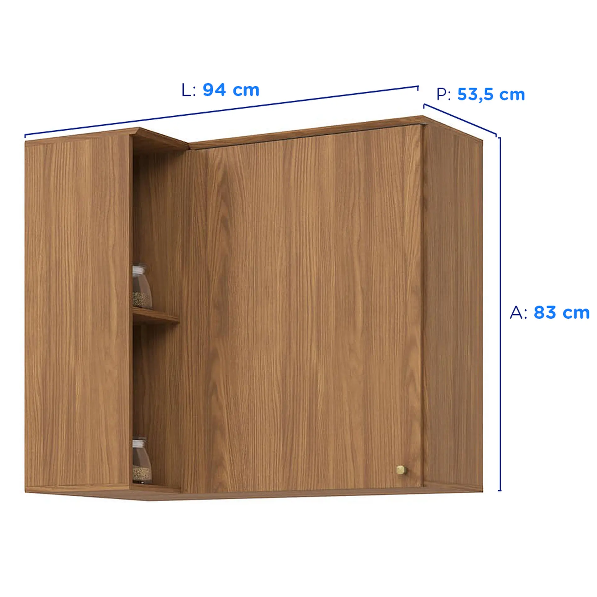 Armário Aéreo de Canto 1 Porta 2 Nichos MDP MDF Requinte Henn – Nature