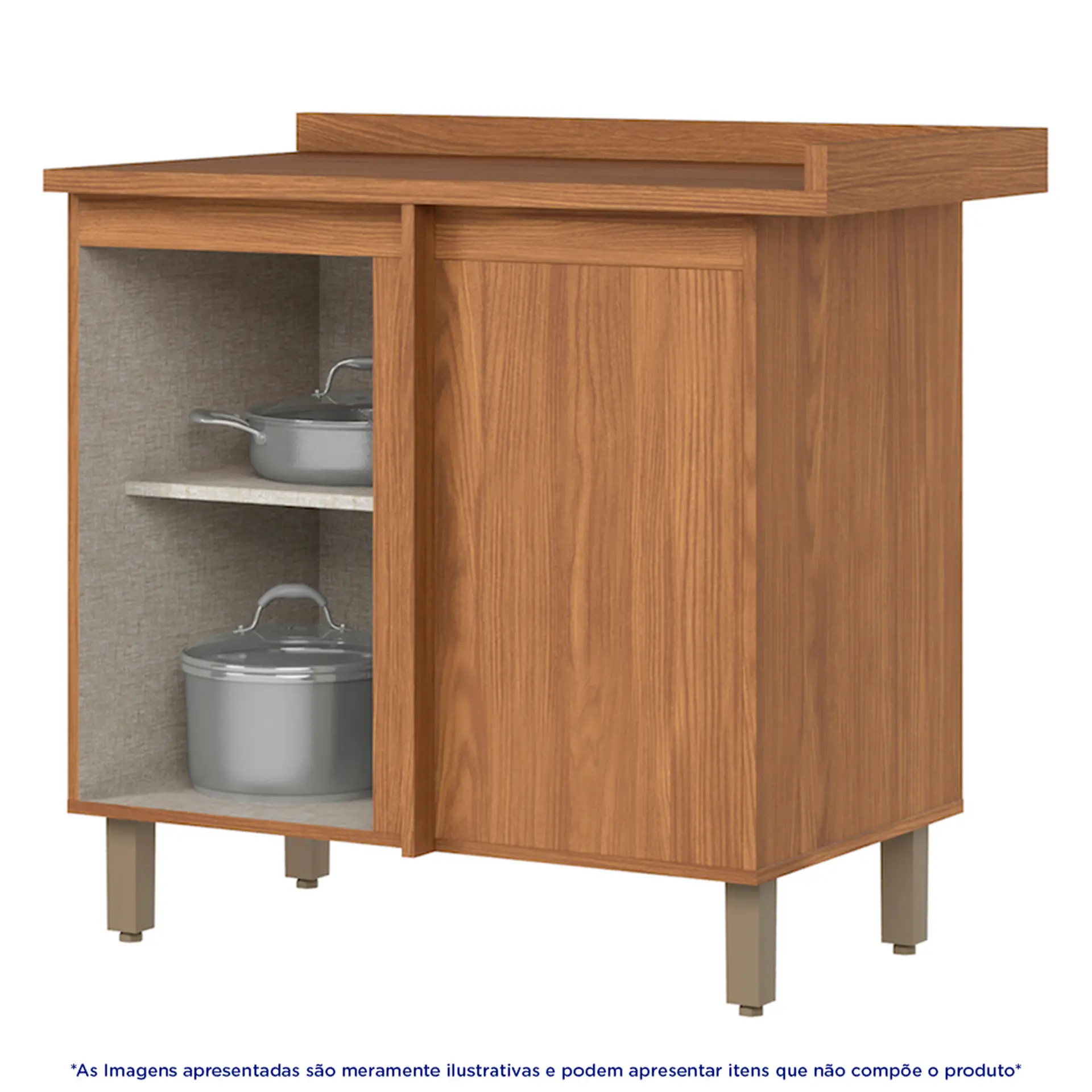 Início Moveis Balcão Balcão com Tampo 1 Porta 84 cm MDP Puxadores em Alumínio Requinte Henn – Nature/Areia HP