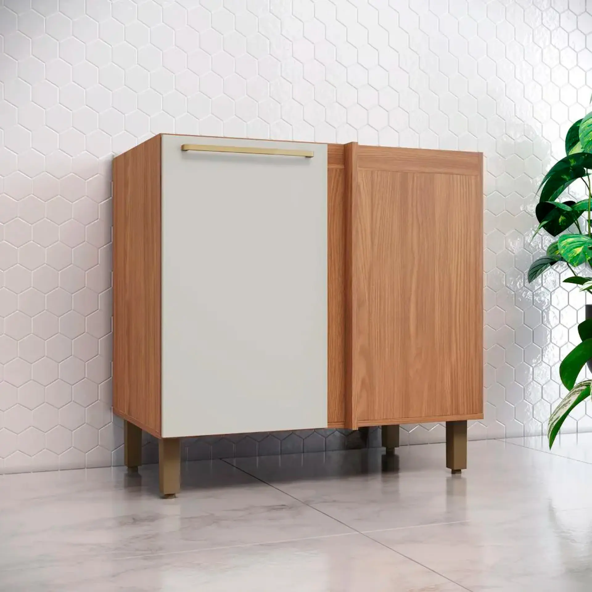 Balcão com Tampo 1 Porta 94 cm Canto Reto Americana Henn – Branco