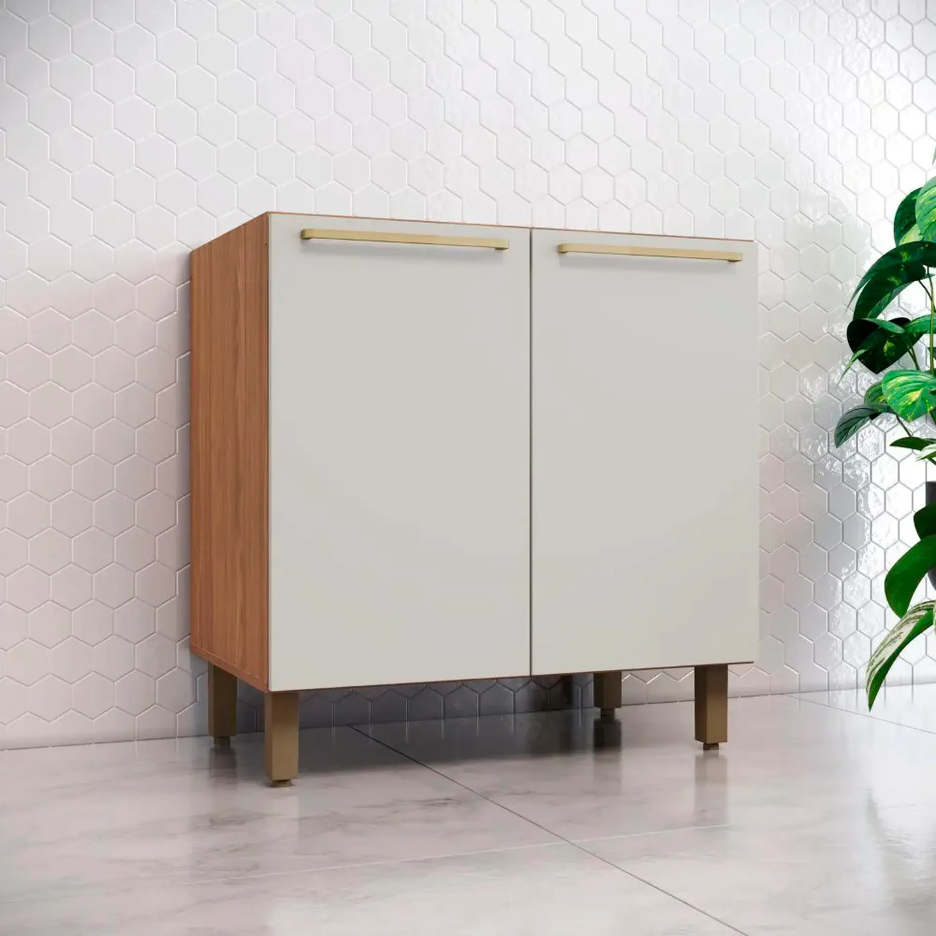 Balcão com Tampo 2 Portas 80cm MDP MDF Requinte Henn – Nature/Areia HP