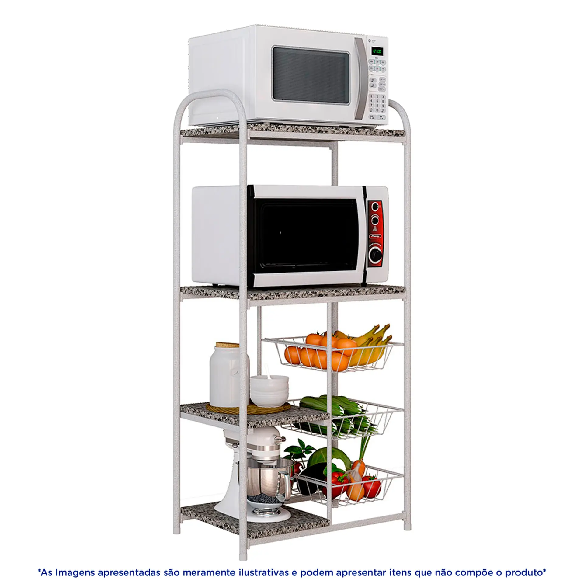 Início Moveis Balcão Balcão Fruteira Multiuso Aço com Tampos de Granito 44cm Dallas Fabone – Branco