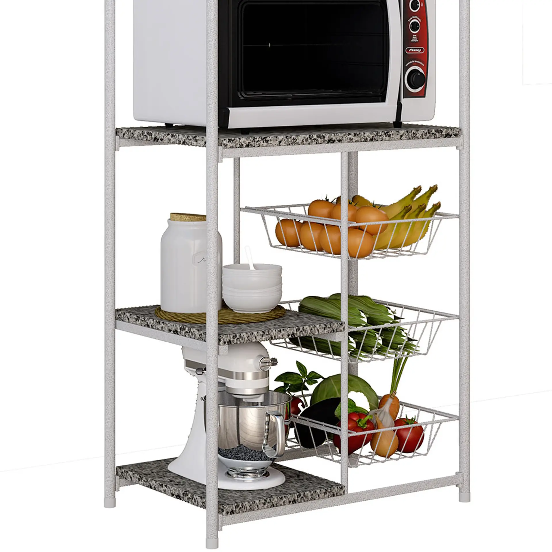 Balcão Fruteira Multiuso Aço com Tampos de Granito 44cm Dallas Fabone – Branco