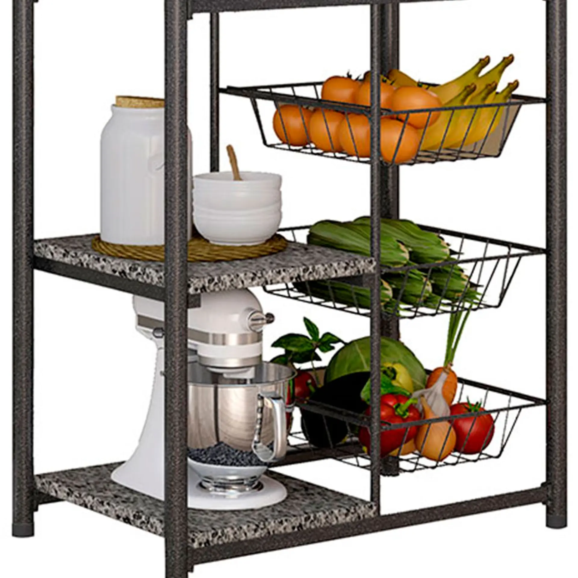 2 es Balcão Fruteira Multiuso Aço com Tampos de Granito 44cm Dallas Fabone – Preto/Prata Cód.
