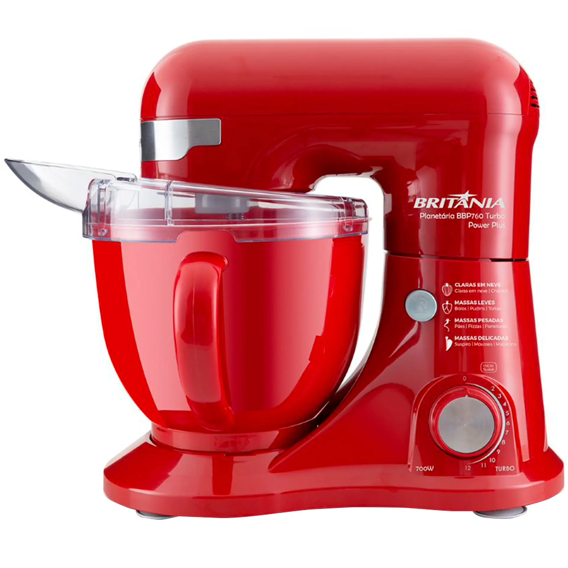 2 es Batedeira Planetária Britânia Power Plus 12 Velocidades 700W 4,5L BBP760 – Vermelho – 220 Volts Cód.