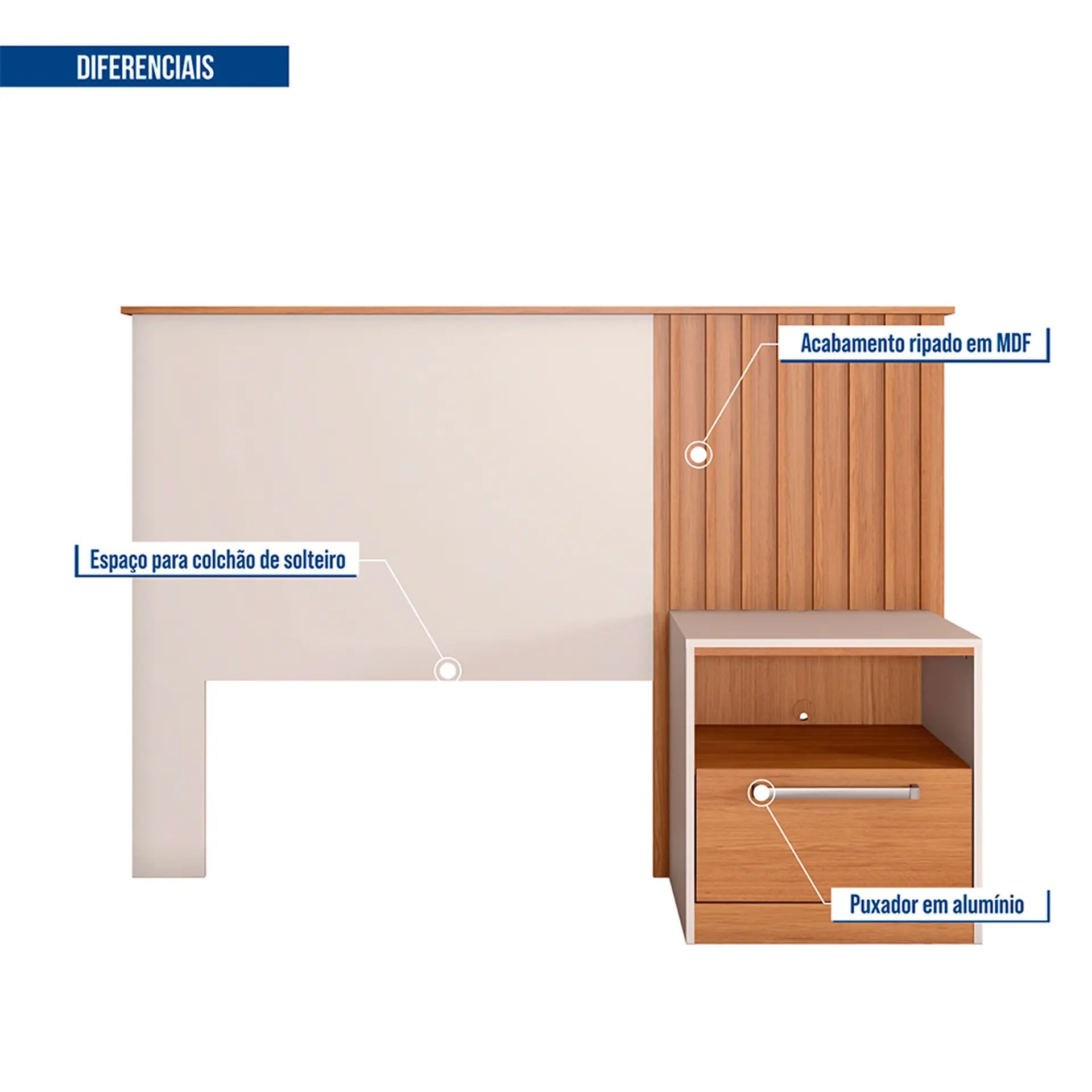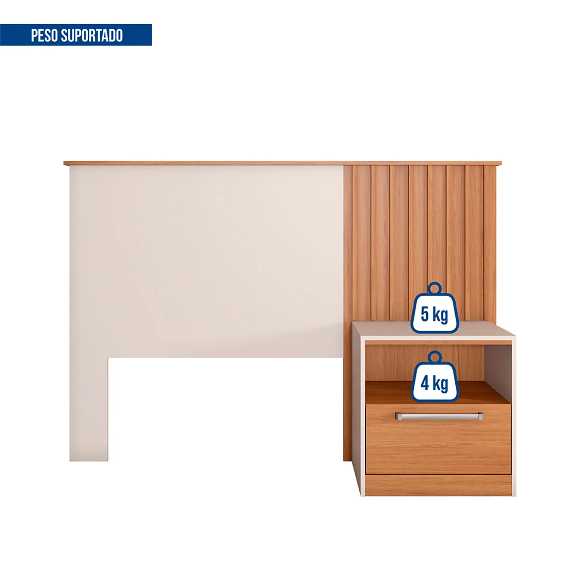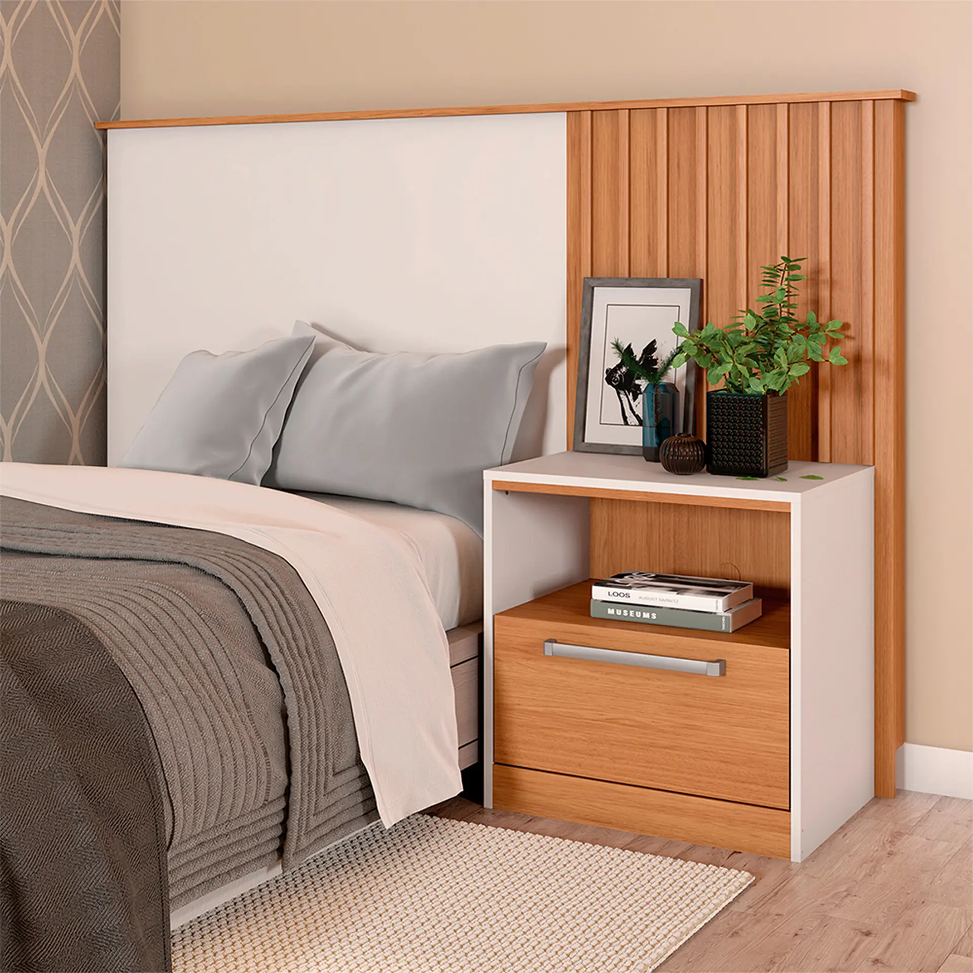 Cabeceira Solteiro com Mesa de Apoio Lucila Caemmun – Freijo/Off White Cód.