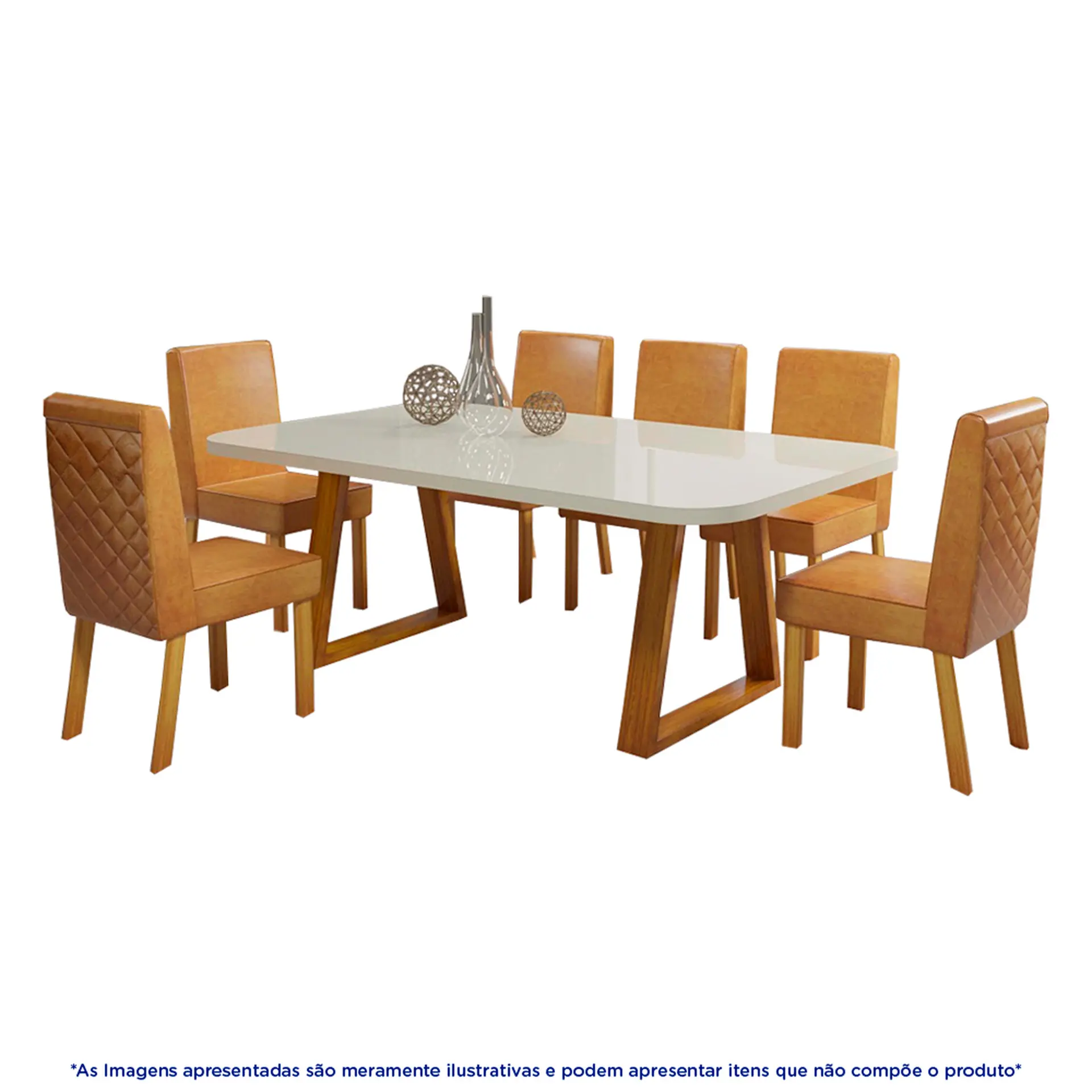 Conjunto de Mesa 6 Cadeira Tampo com Vidro Sofistic Bom Pastor – Naturale Off