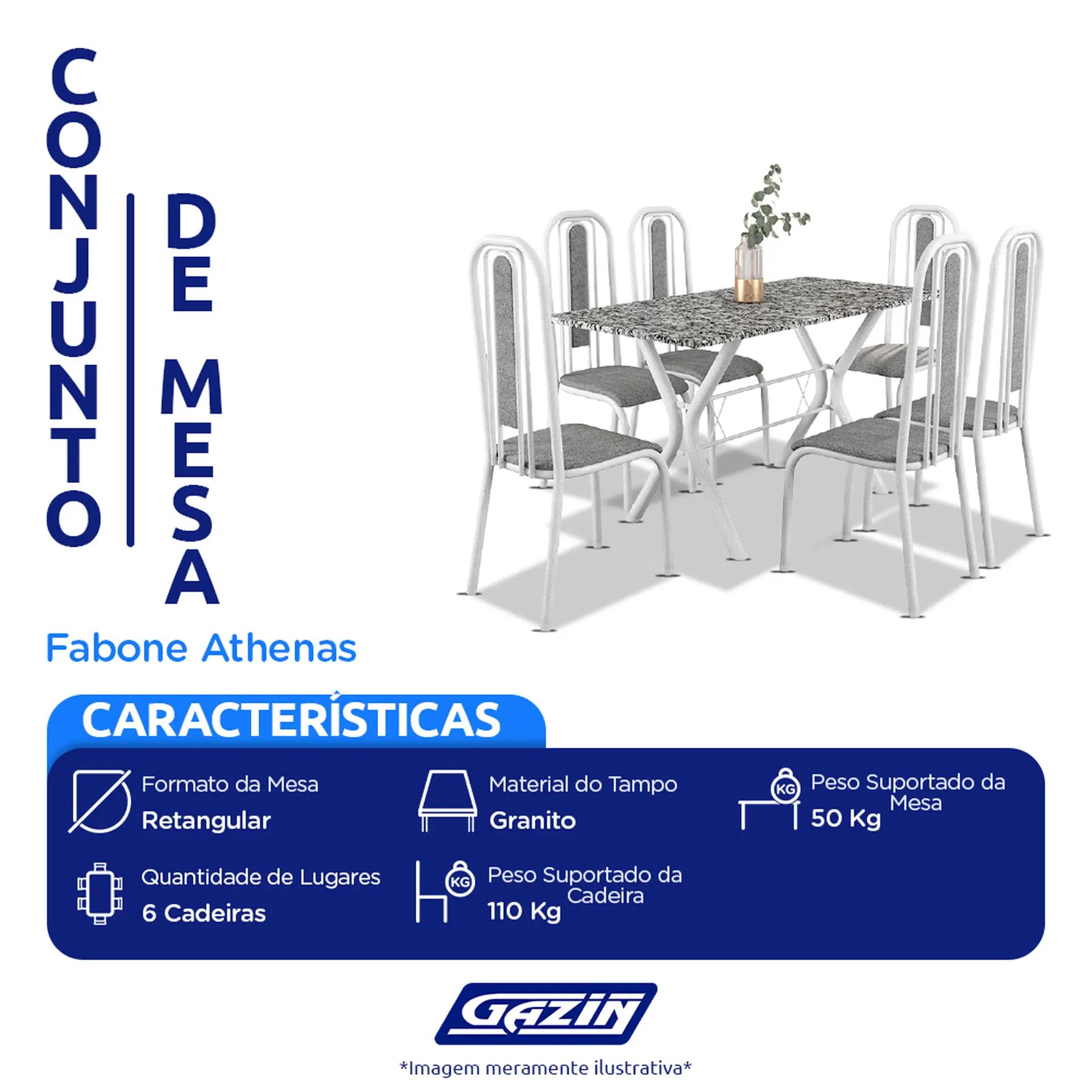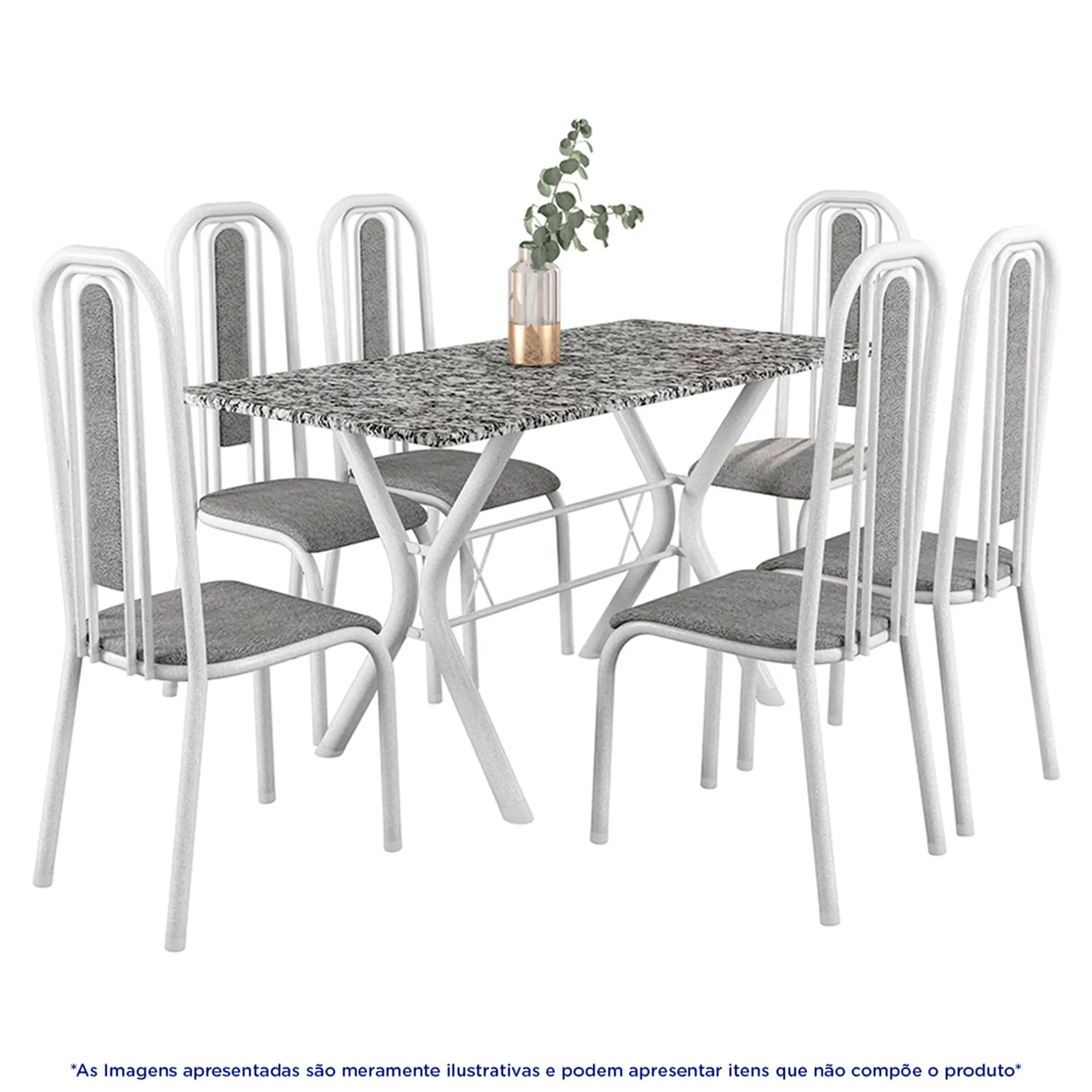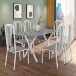Conjunto de Mesa 6 Cadeiras Tampo Granito Athenas Fabone – Branco Prata/ Vegetale