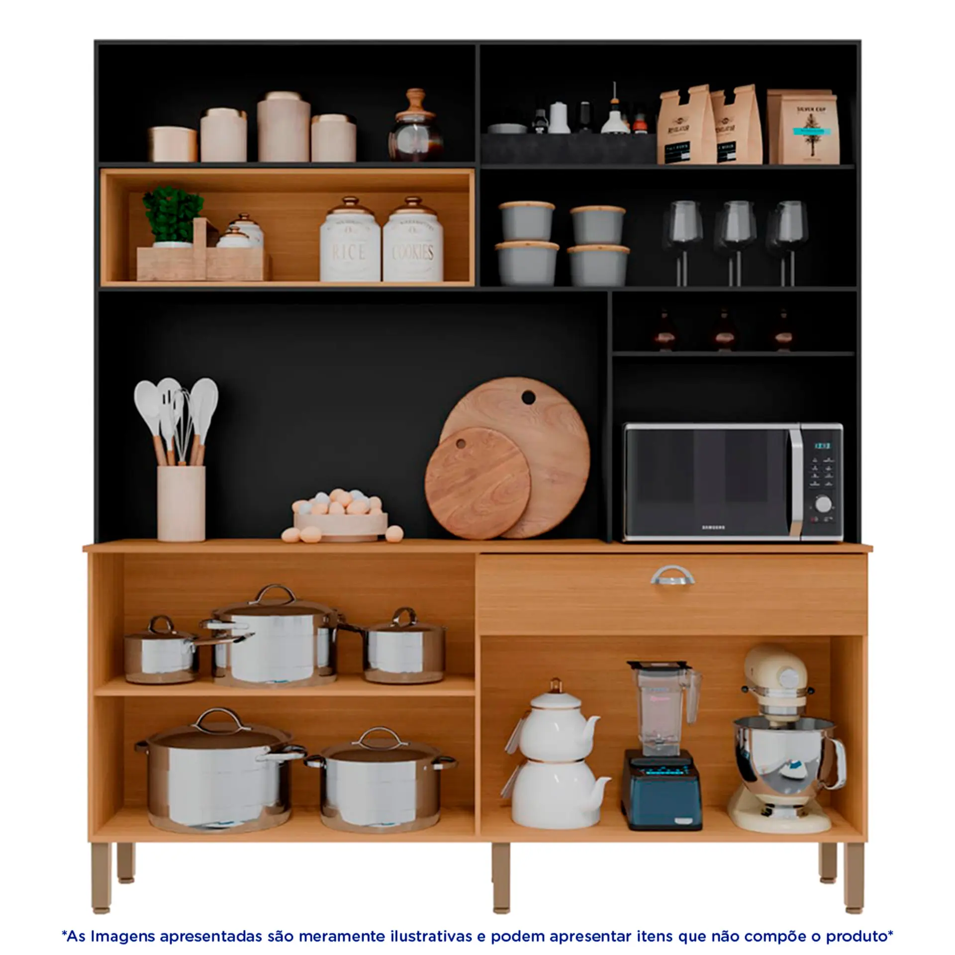 Cozinha Compacta 8 Portas 1 Gaveta e Kit’s Paraná – Freijó Nero
