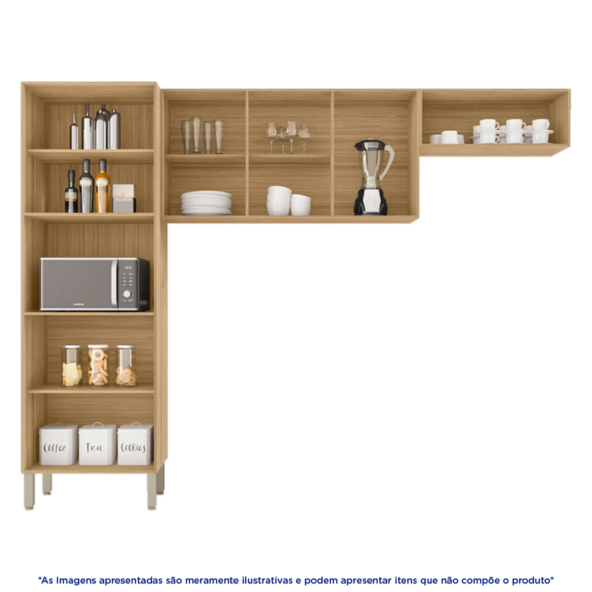 possui espaço para louças, utensílios, eletrodomésticos e muito mais. São