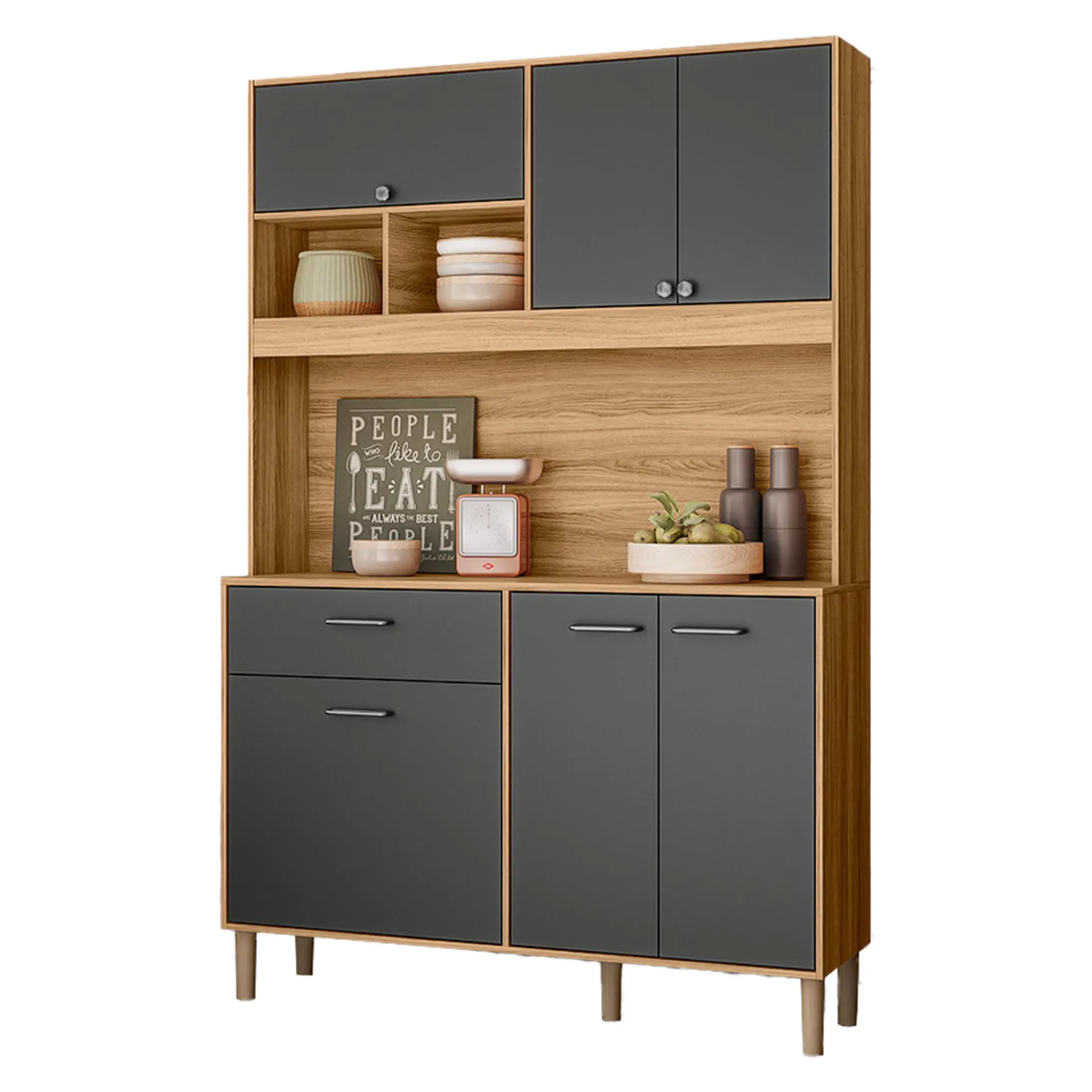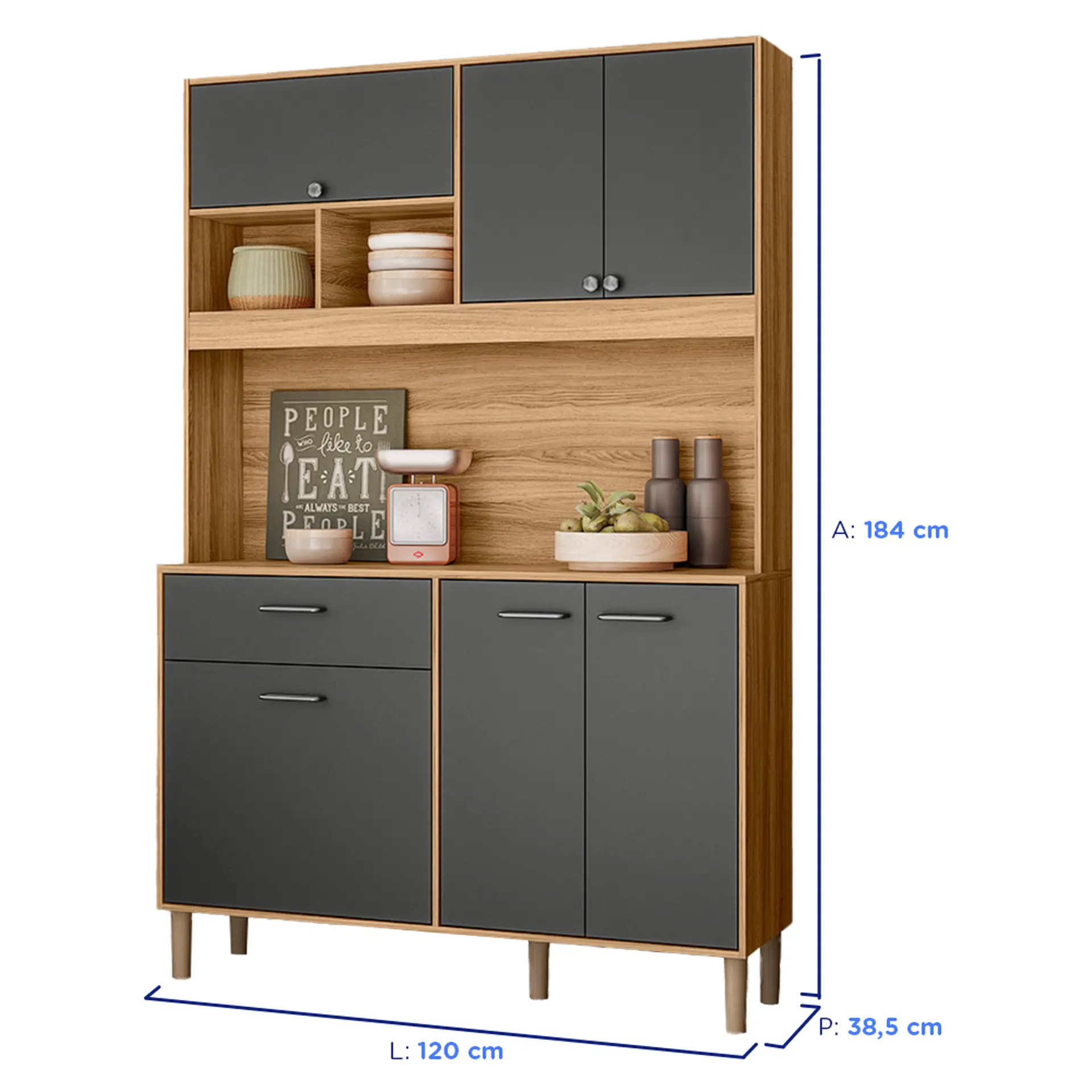 Cozinha Compacta com Tampo 6 Portas 1 Gaveta em MDP Erva Doce Nicioli – Freijo/Chumbo