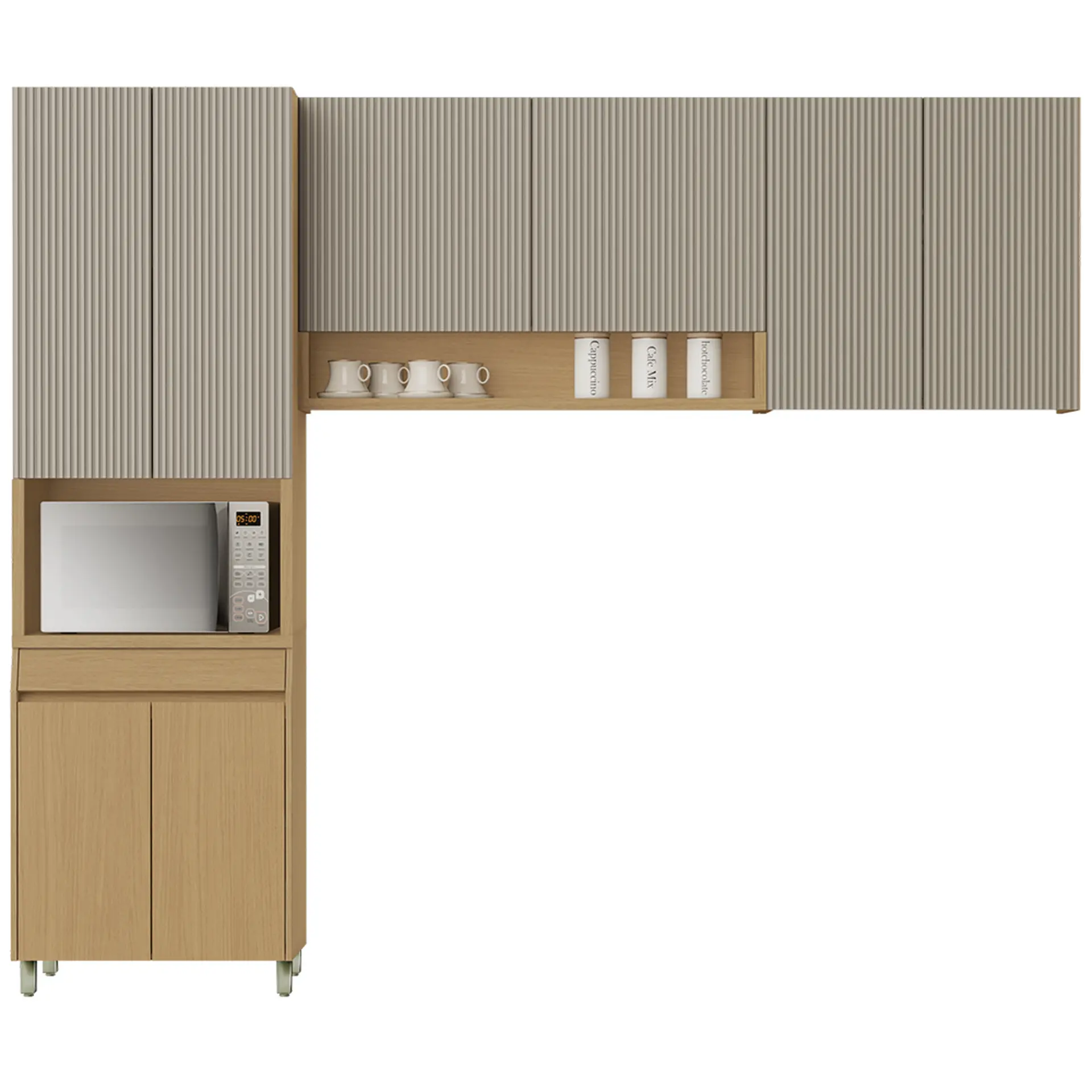 Cozinha Modulada 3 Peças 8 Portas 1 Gaveta Simone Mendes Nesher – Carvalho Greige