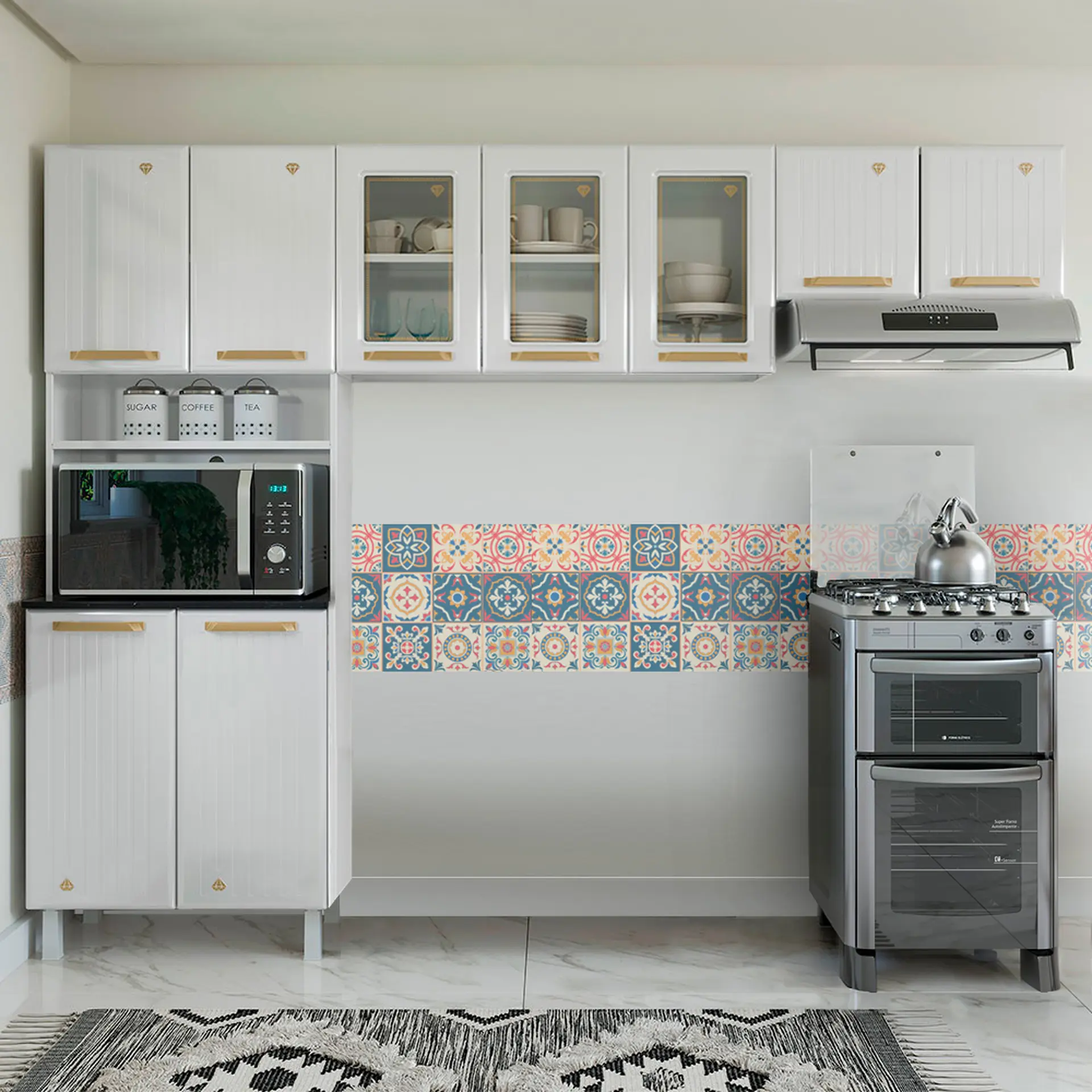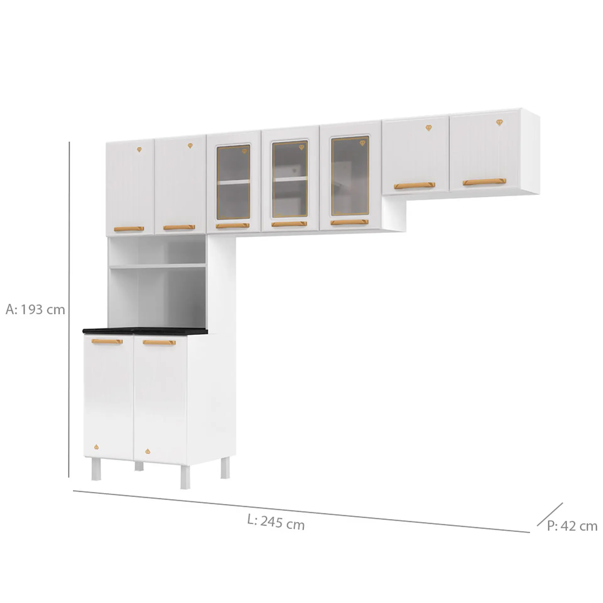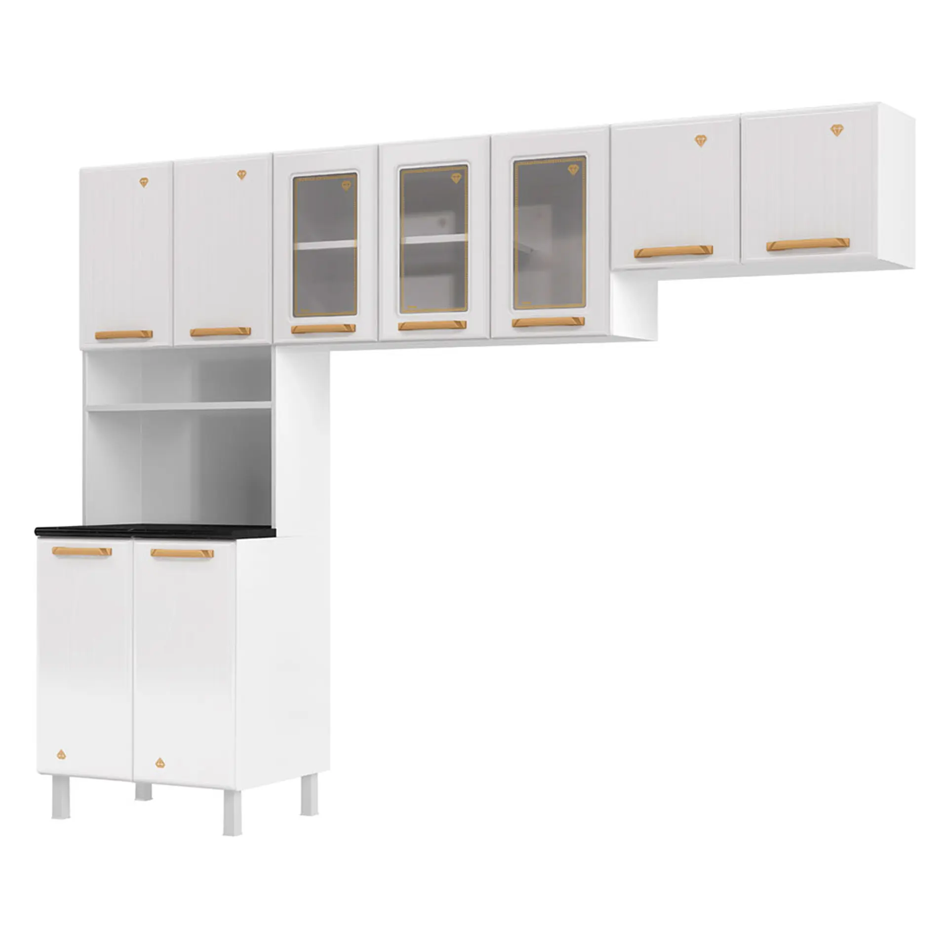 2 es Cozinha Modulada 3 Peças 9 Portas Aço Diamante Telasul – Branco/dourado Cód.