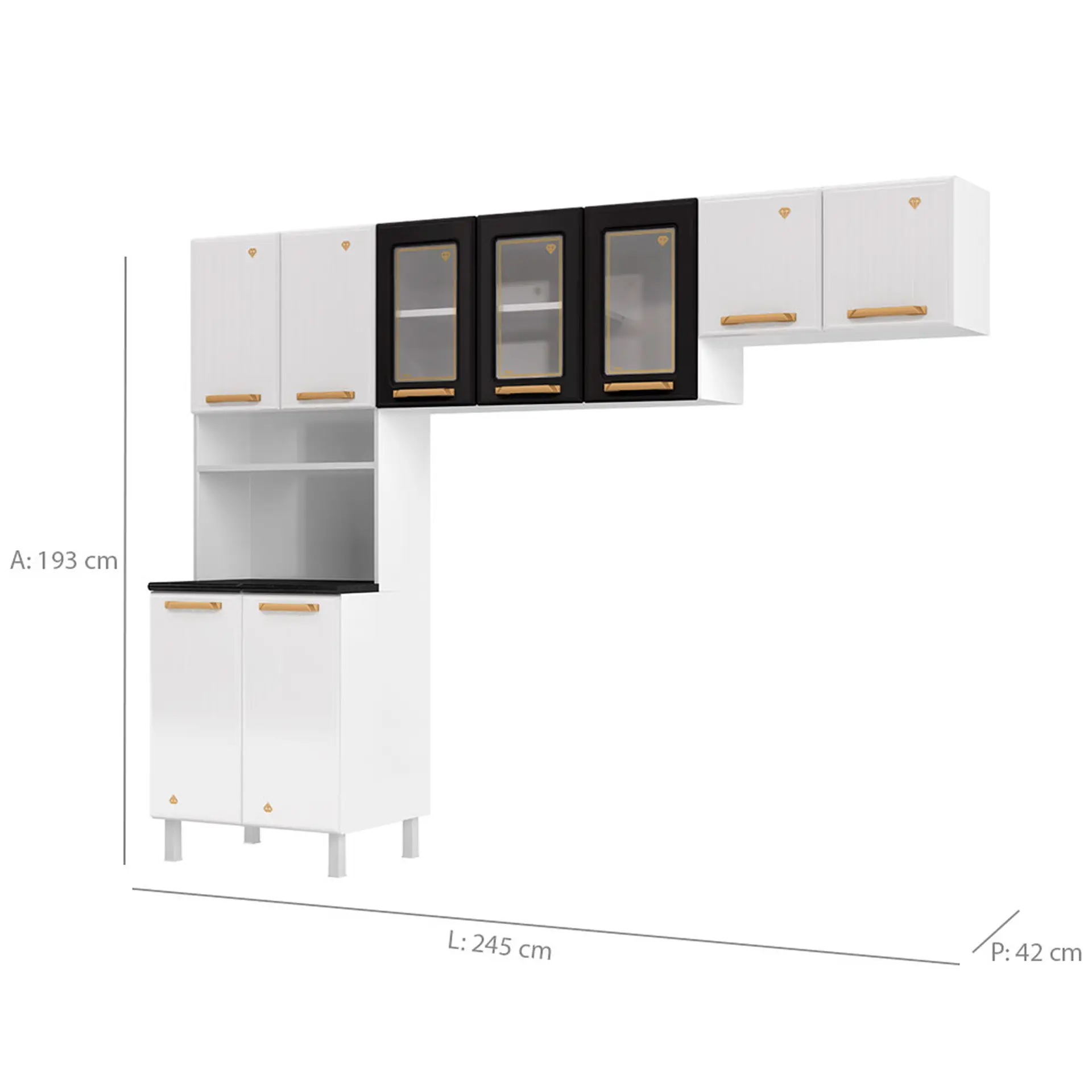 Cozinha Modulada 3 Peças 9 Portas Aço Diamante Telasul – Branco/Preto