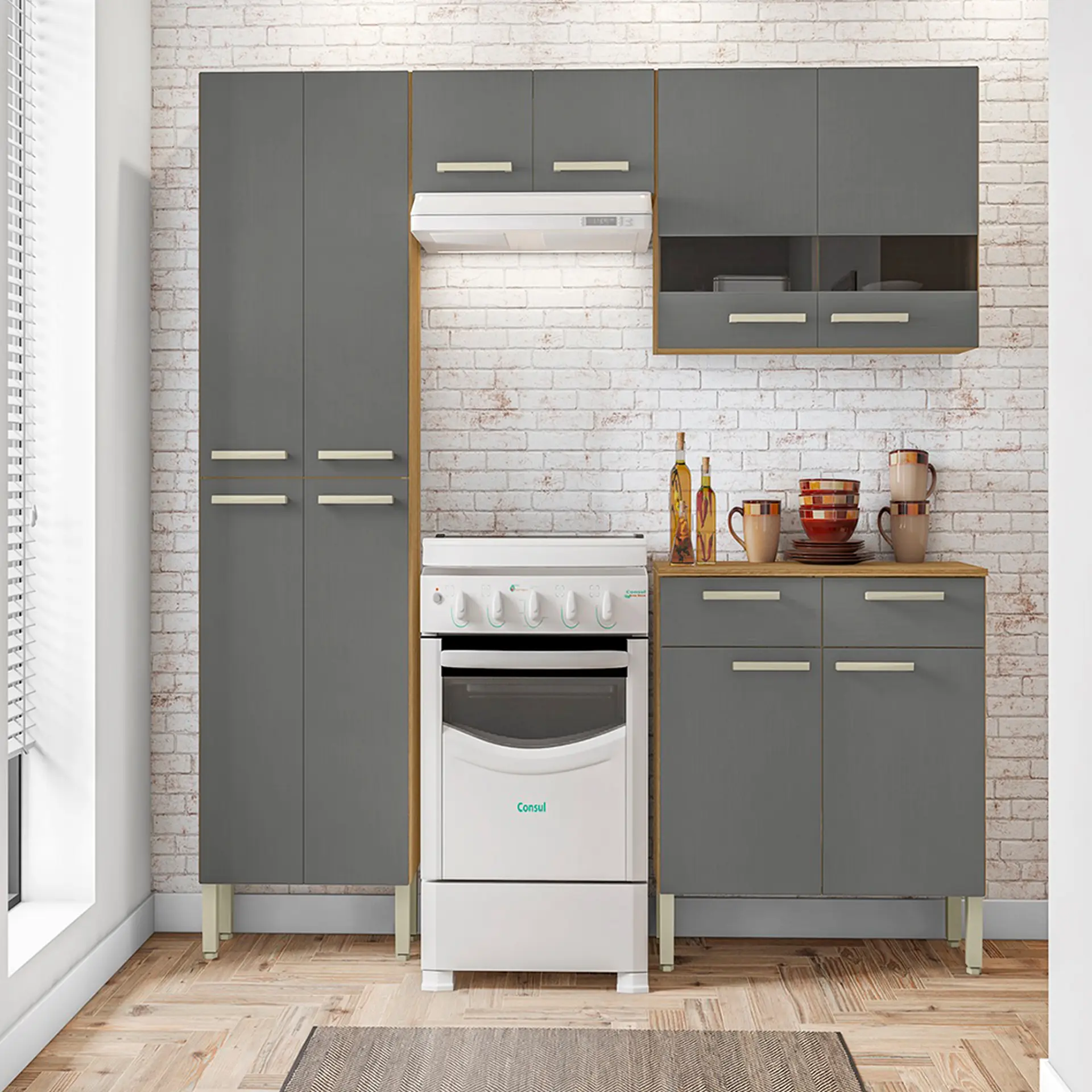 Cozinha Modulada com Balcão 4 Peças 10 Portas em MDP Nala Kit’s Paraná – Freijo gris