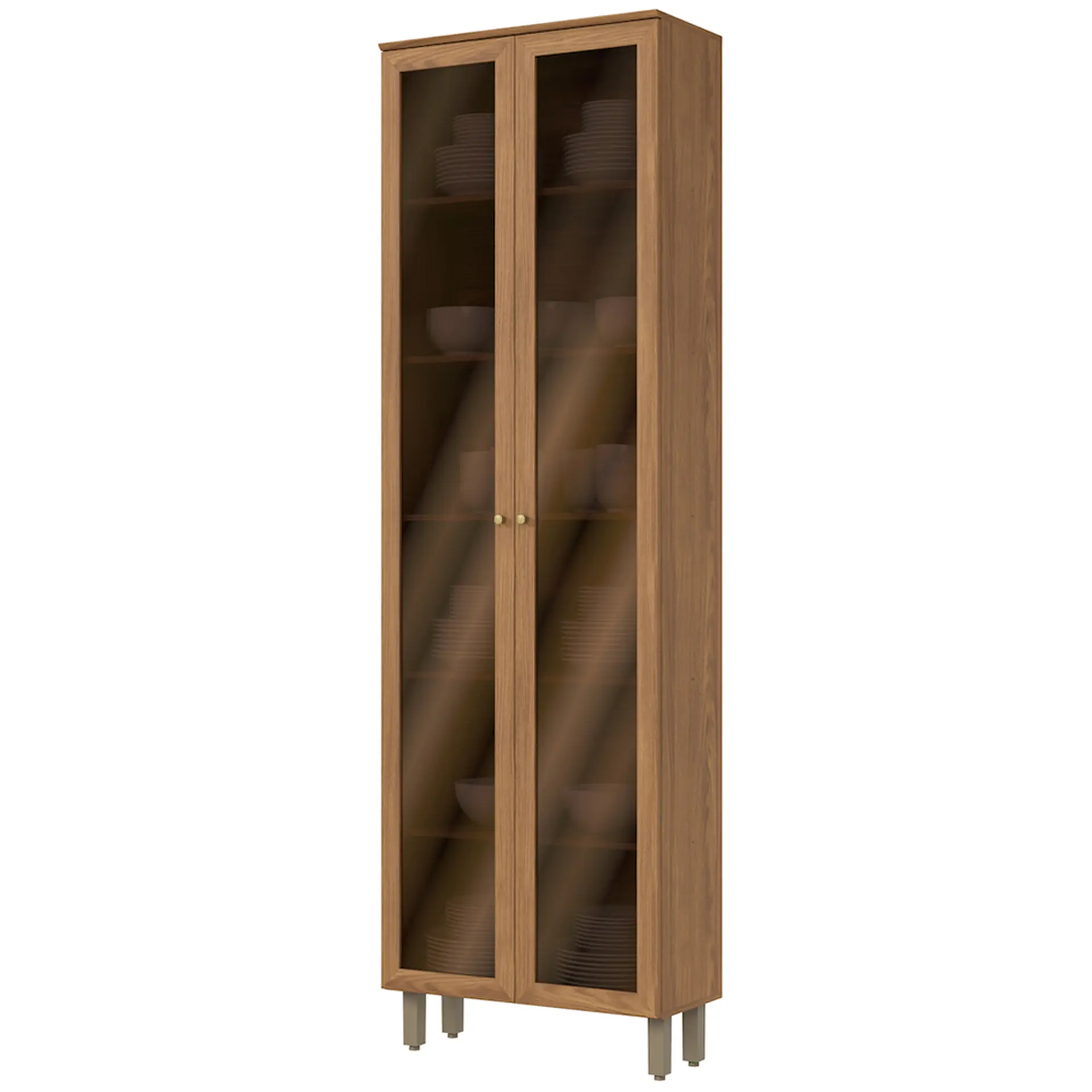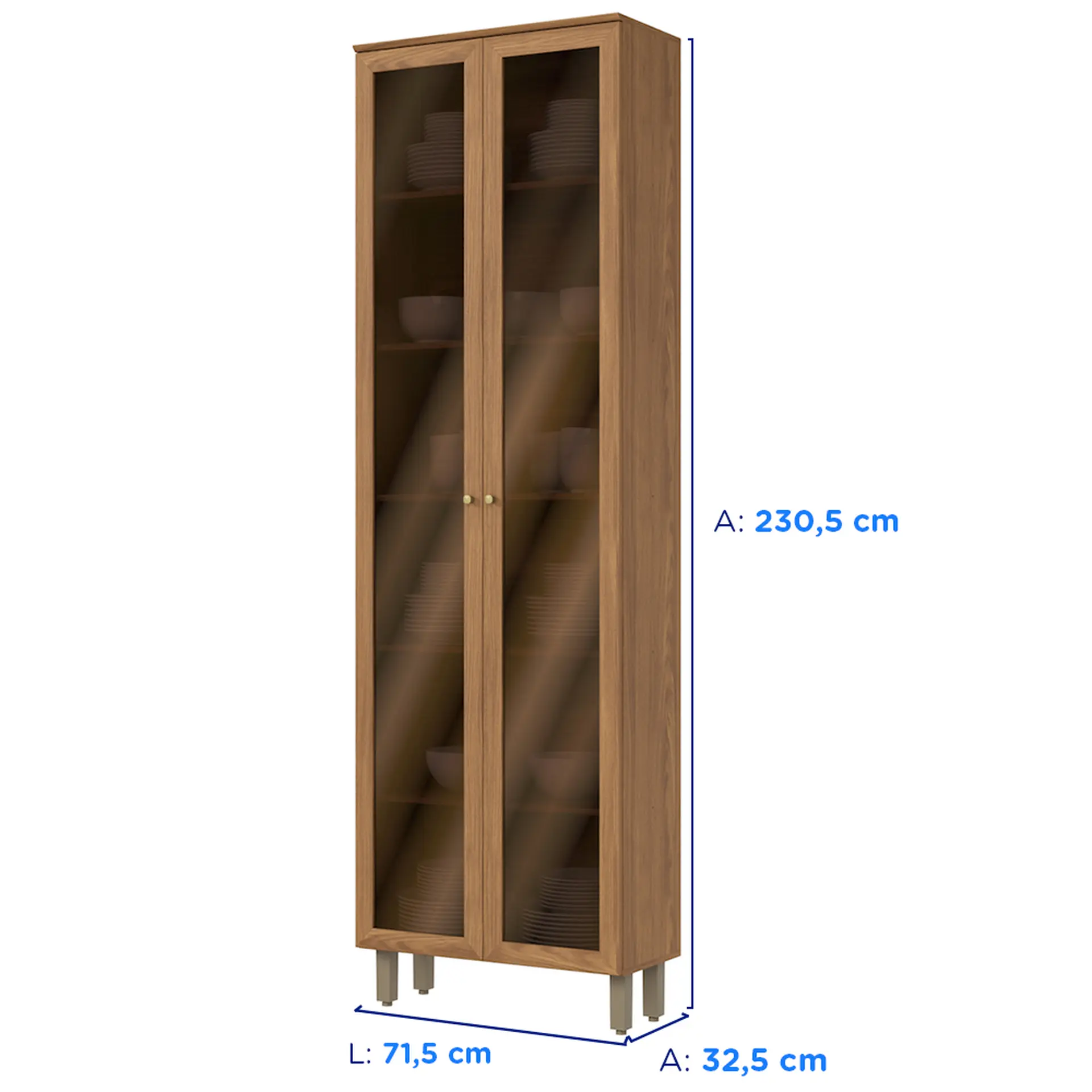 Cristaleira 2 Portas com Vidro 6 Prateleiras Puxadores em Alumínio Requinte Henn – Nature