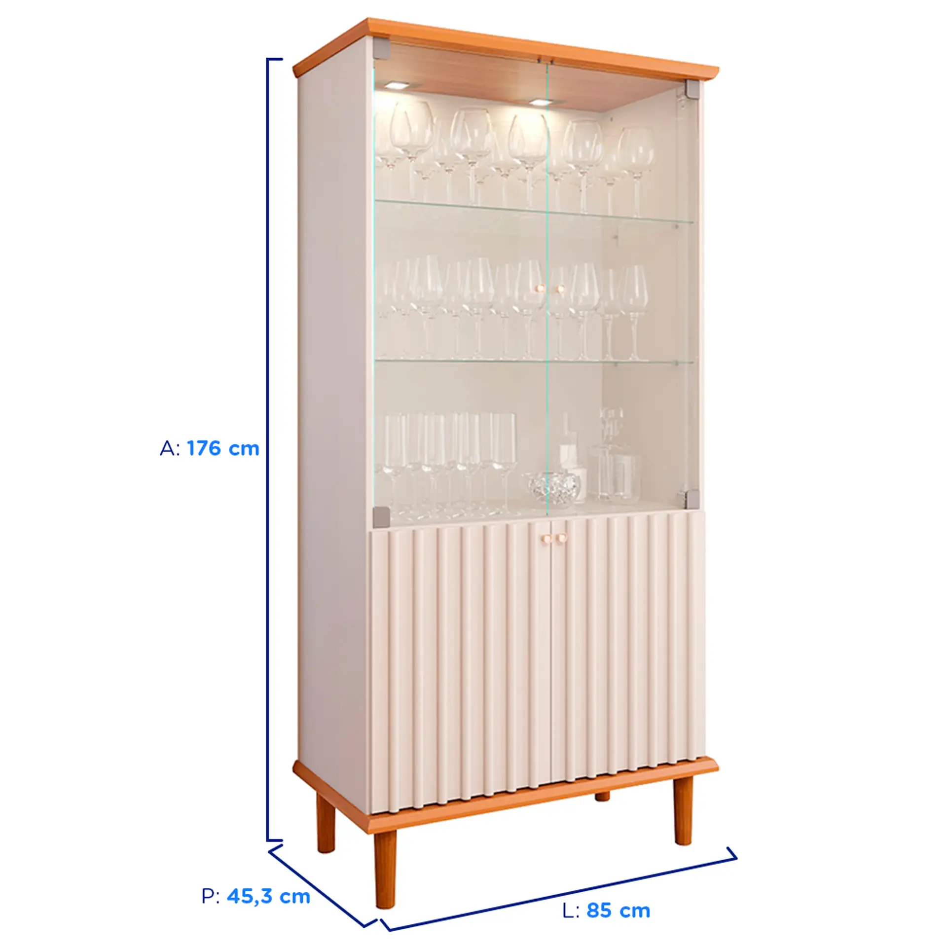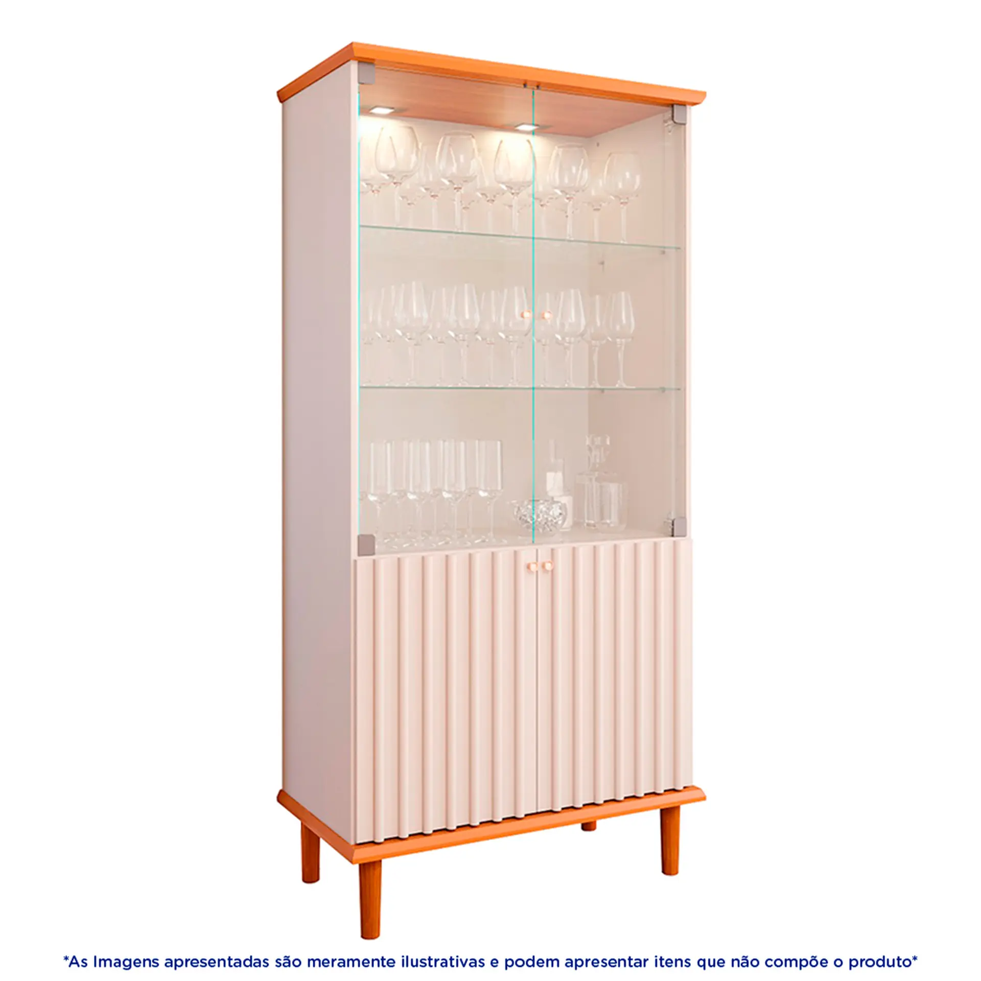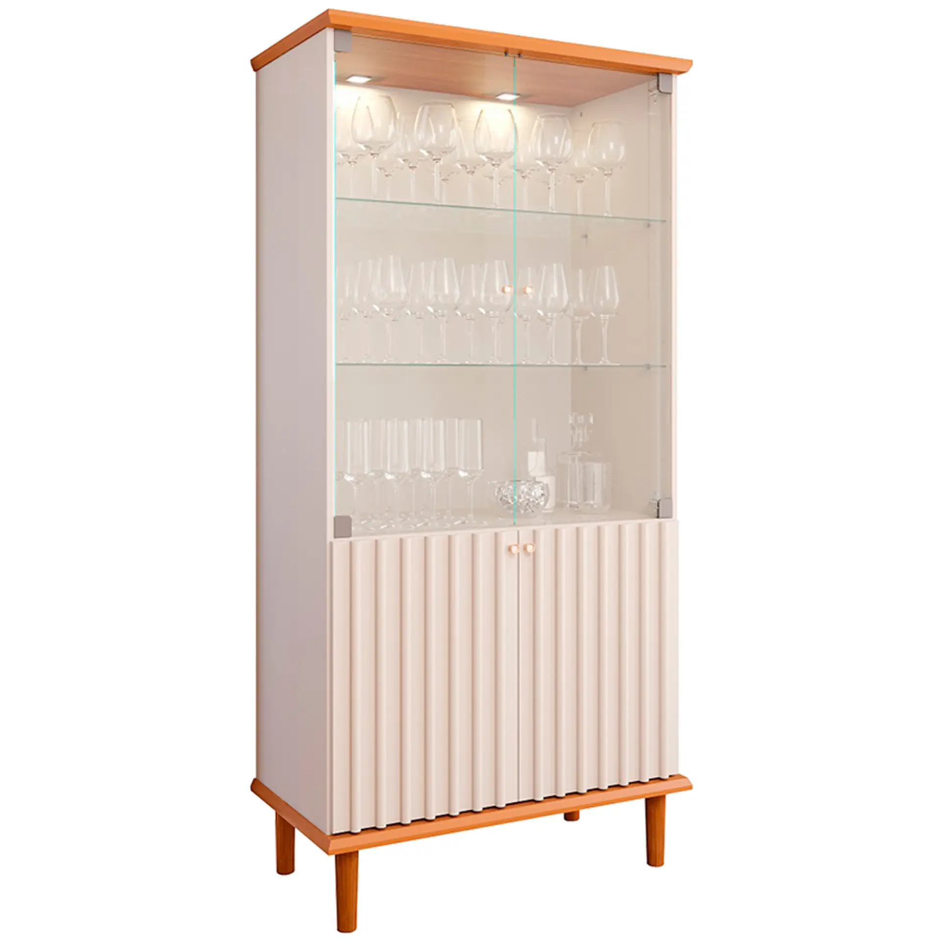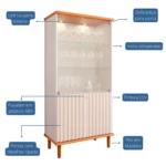 Cristaleira 4 Portas 2 Prateleiras Luiza Cimol com LED – Cinamomo/ Off white