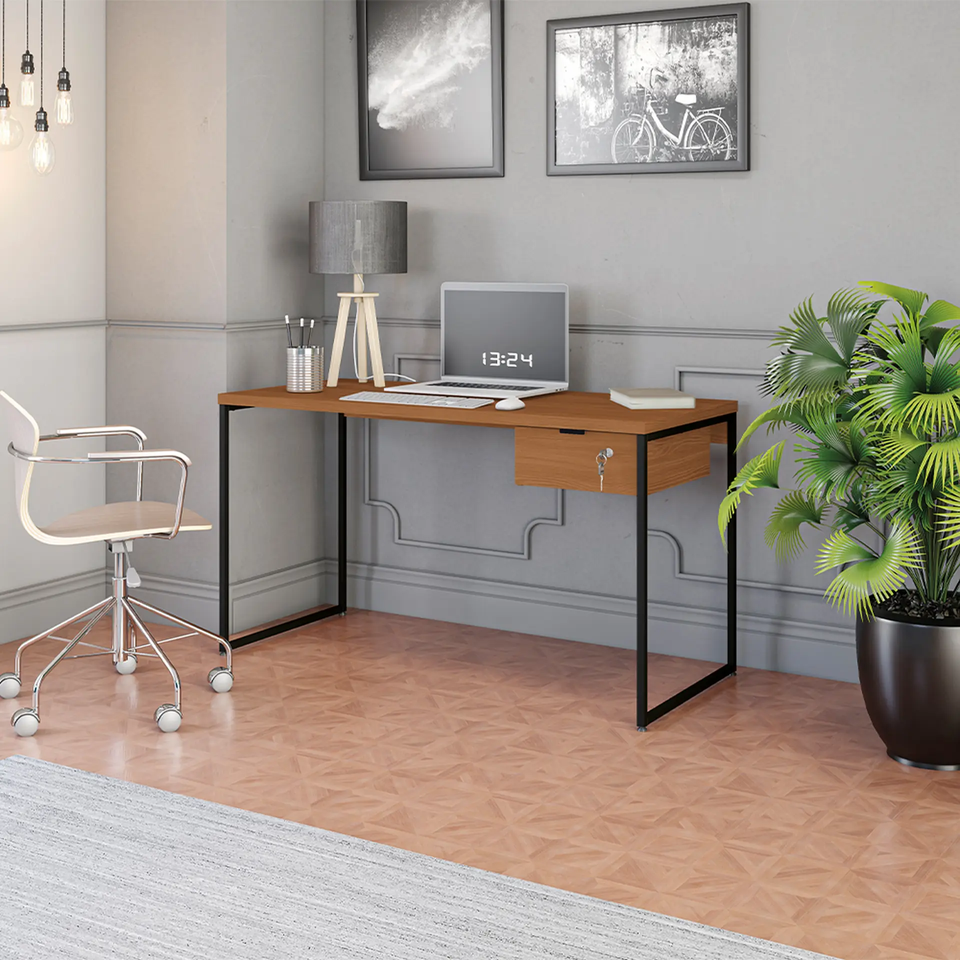 Escrivaninha 1 Gaveta Estrutura Metálica Tampo em MDP New Kappesberg