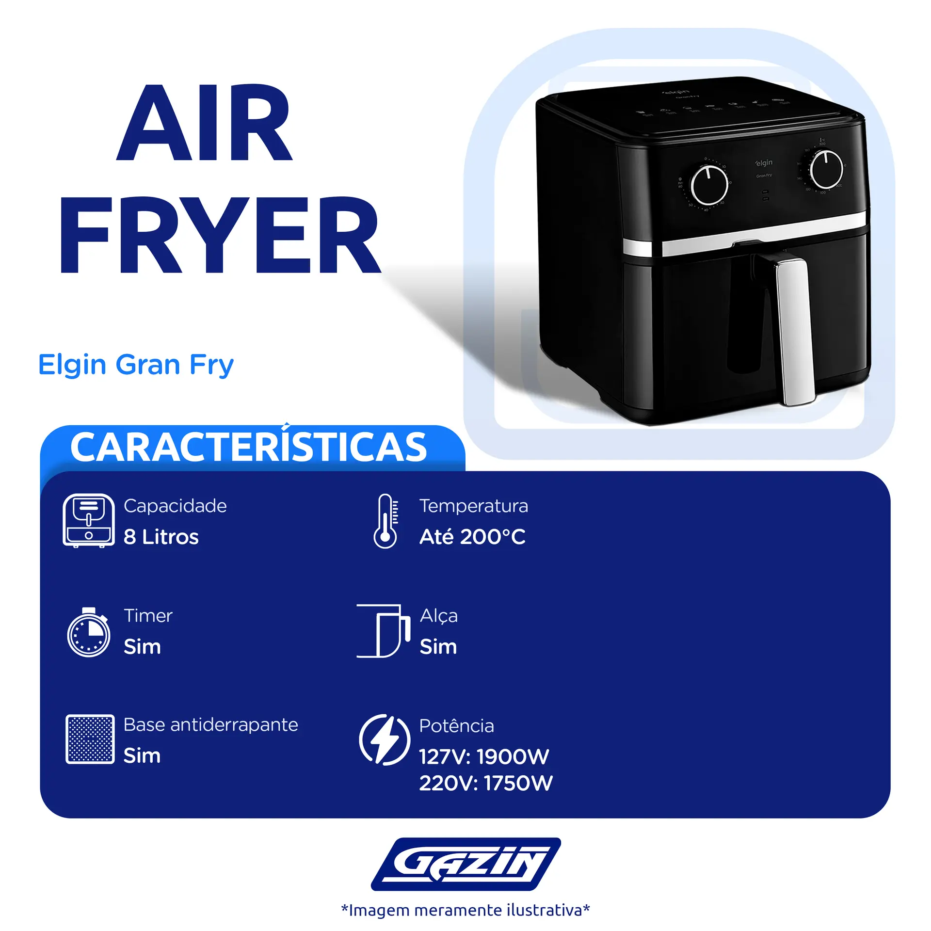FRITADEIRA ELÉTRICA AIR FRYER ELGIN GRAN FRY Fry 8L 1750W