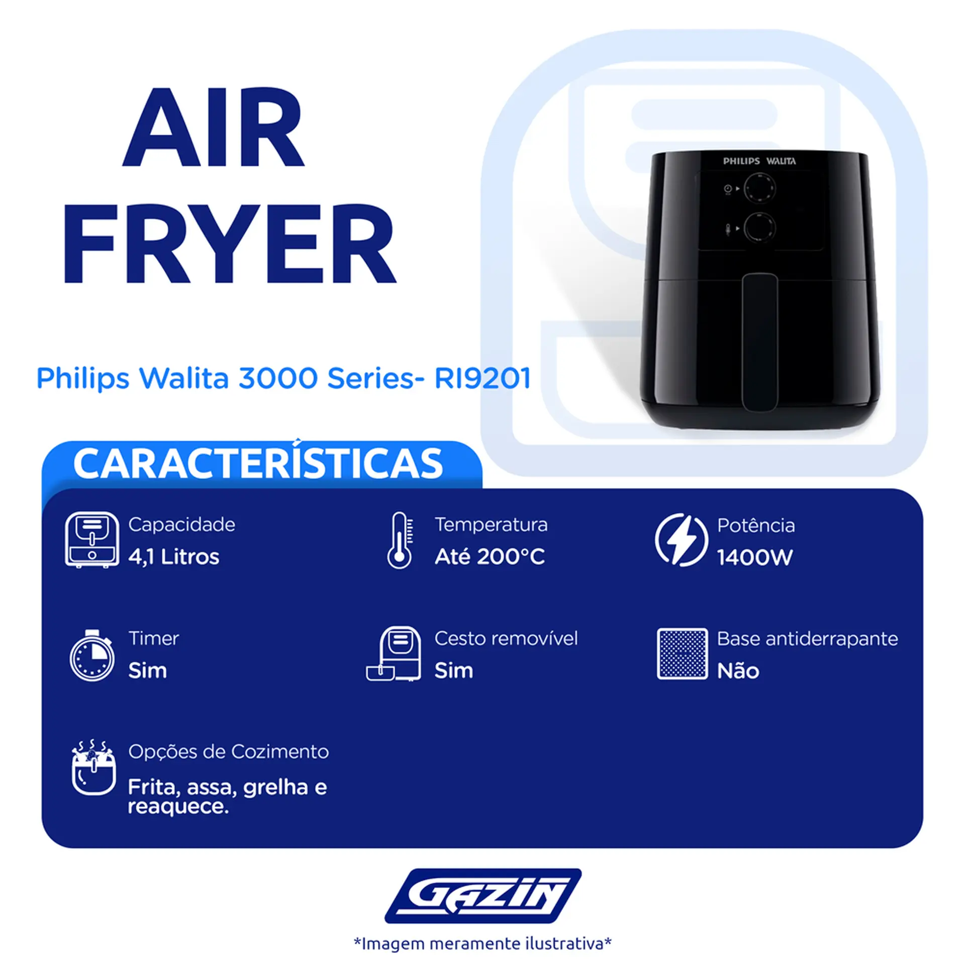 FRITADEIRA ELÉTRICA  AIR FRYER PHILIPS WALITA 3000 SWRIES RI9201 4,1L 1400W