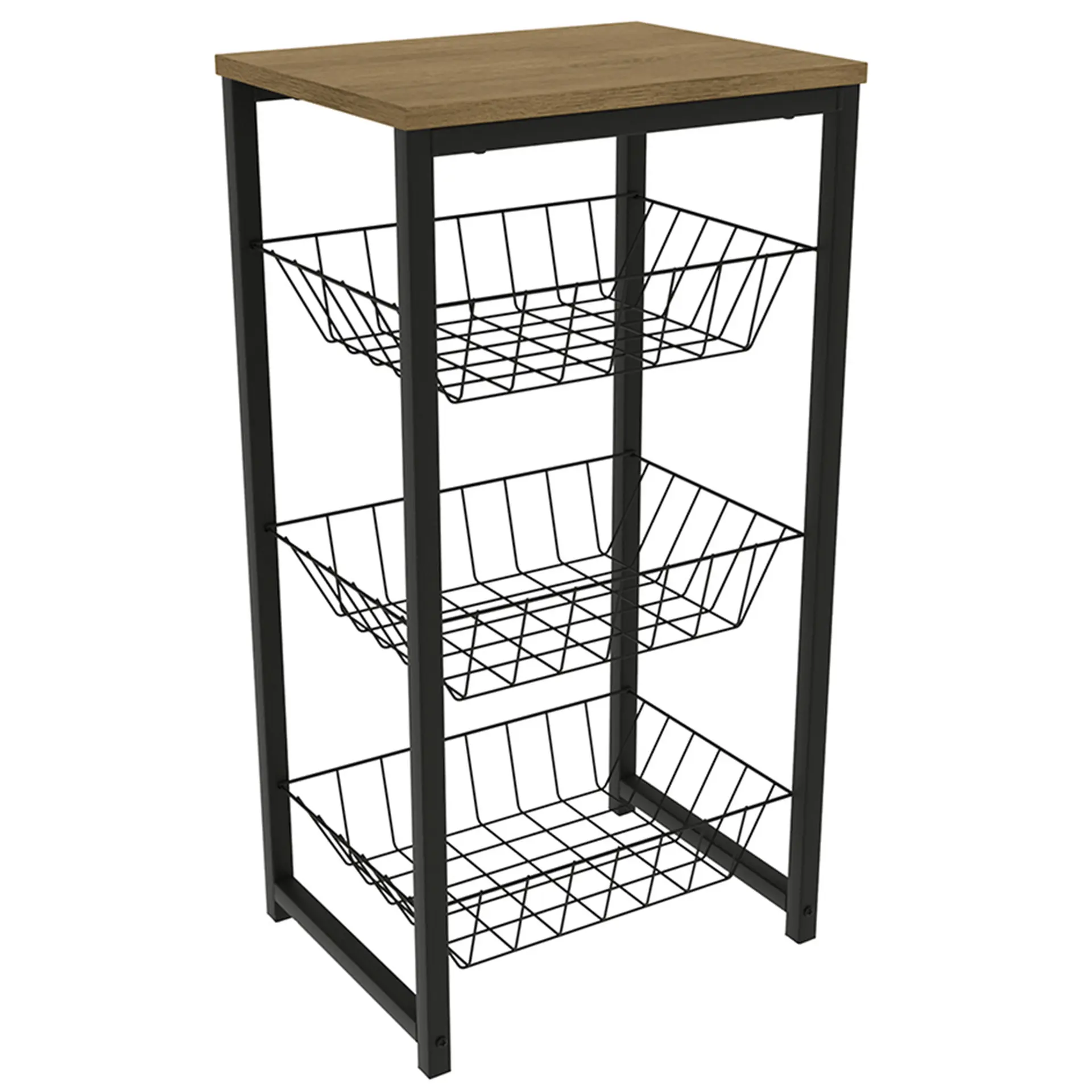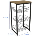 Fruteira Organizadora 40cm 3 cestos LI035 Kappesberg – Freijó/Preto Fosco