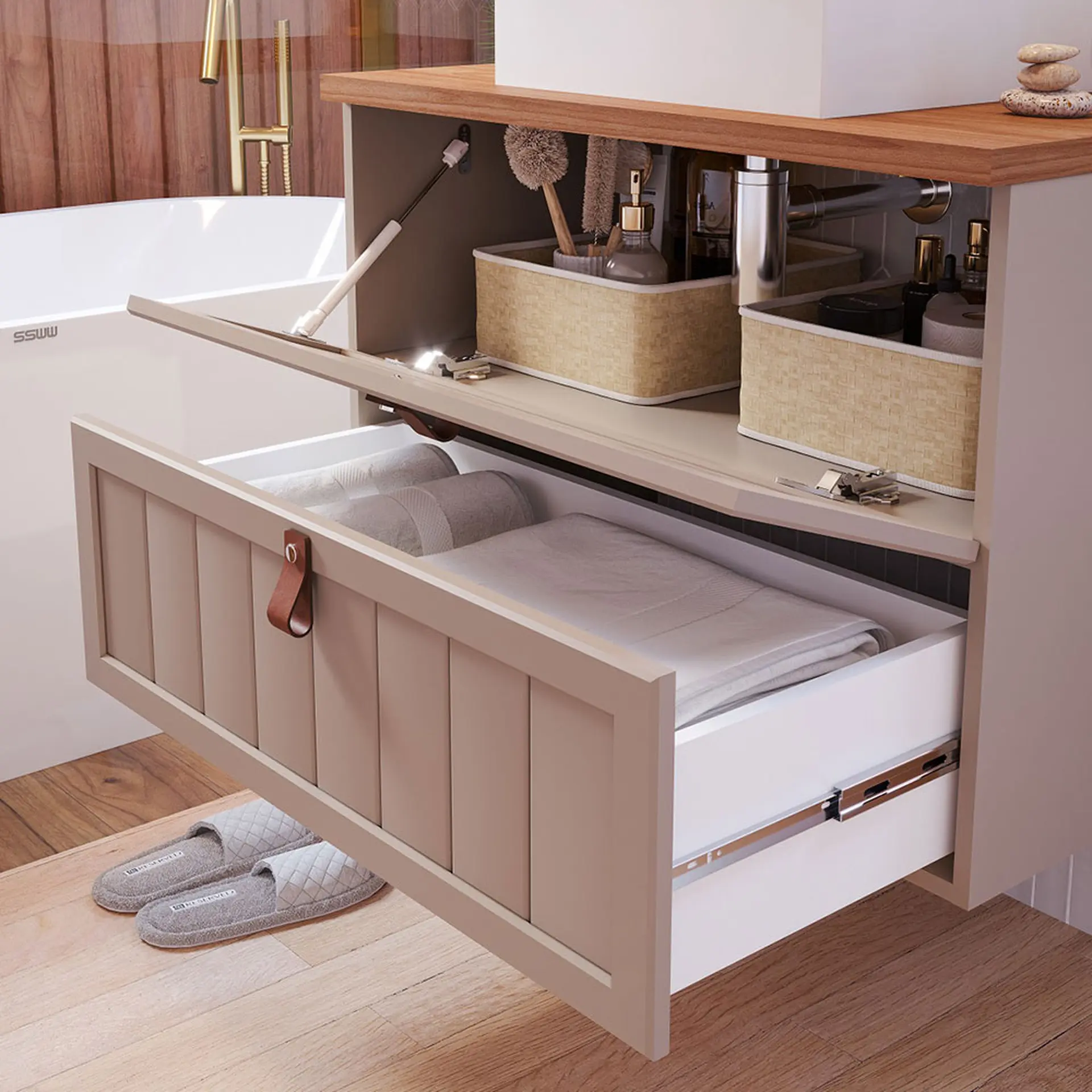 Banheiro mais elegante e organizado é aqui! O Gabinete MGM Aruba traz porta, gaveta e cuba. Assim, você ganha espaço para guardar objetos pessoais, artigos de higiene e muito mais! Beleza nos detalhesO gabinete possui 1 porta basculante e 1 gaveta em MDF com rediças telescópicas super espaçosas. A cuba em mármore sintético combina charme e qualidade, devido à sua maior resistência a arranhões e manchas. O banheiro merece um gabinete que complete o ambiente!Sobre a marca: qualidade MGMA MGM tem quase 20 anos de experiência na fabricação de móveis para banheiros e cozinhas completas. A matriz da empresa fica bem próxima a Vitória, capital do Espírito Santo. Transparência, qualidade, compromisso com os clientes e o meio ambiente é aqui.