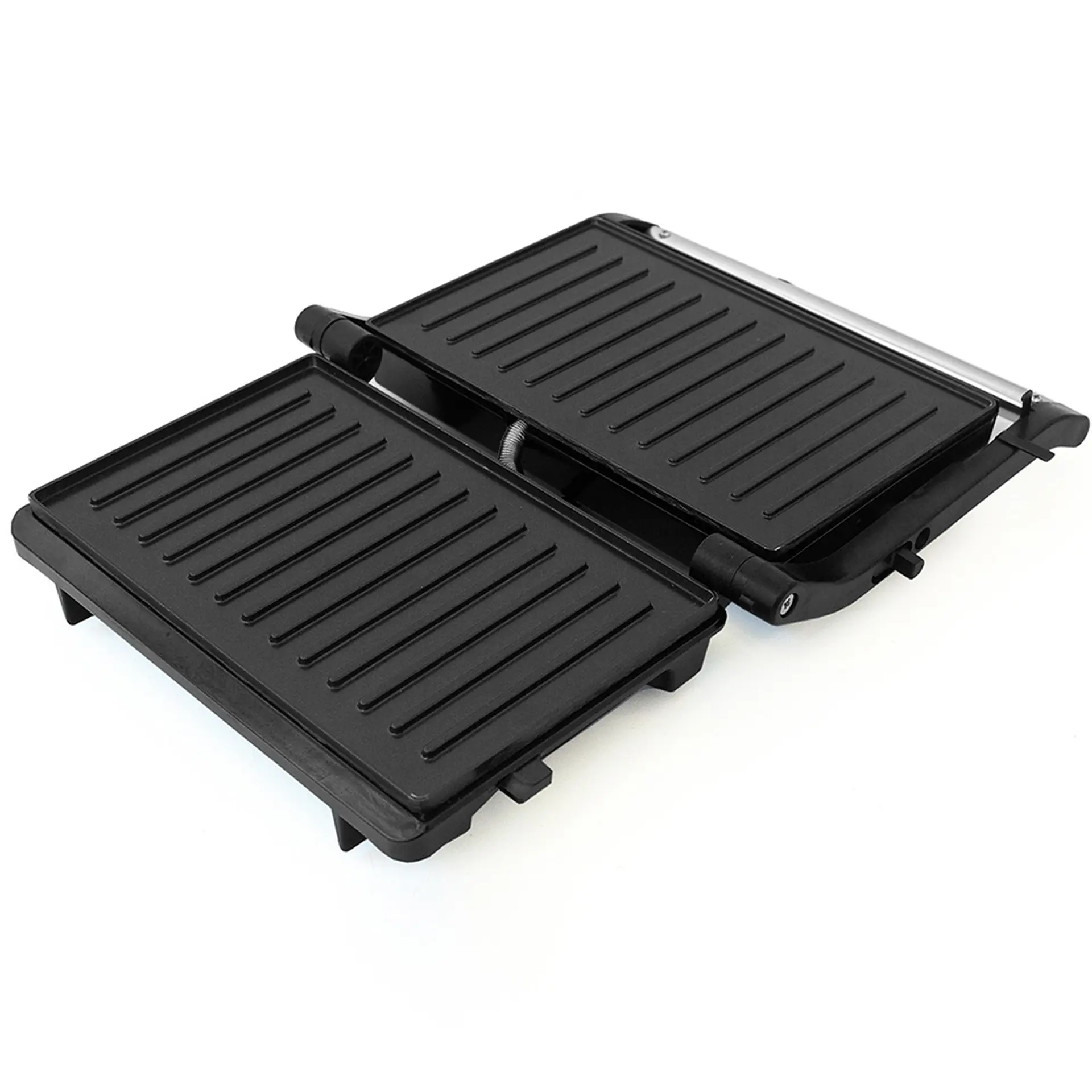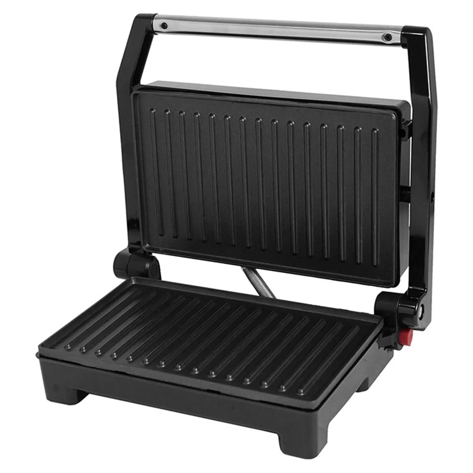 Com as chapas antiaderentes e ondulas fica fácil de fazer a limpeza. O Grill ainda possui uma trava de abertura de 180ºC permitindo que seja utilizada tanto como Grill quanto com sanduicheira.