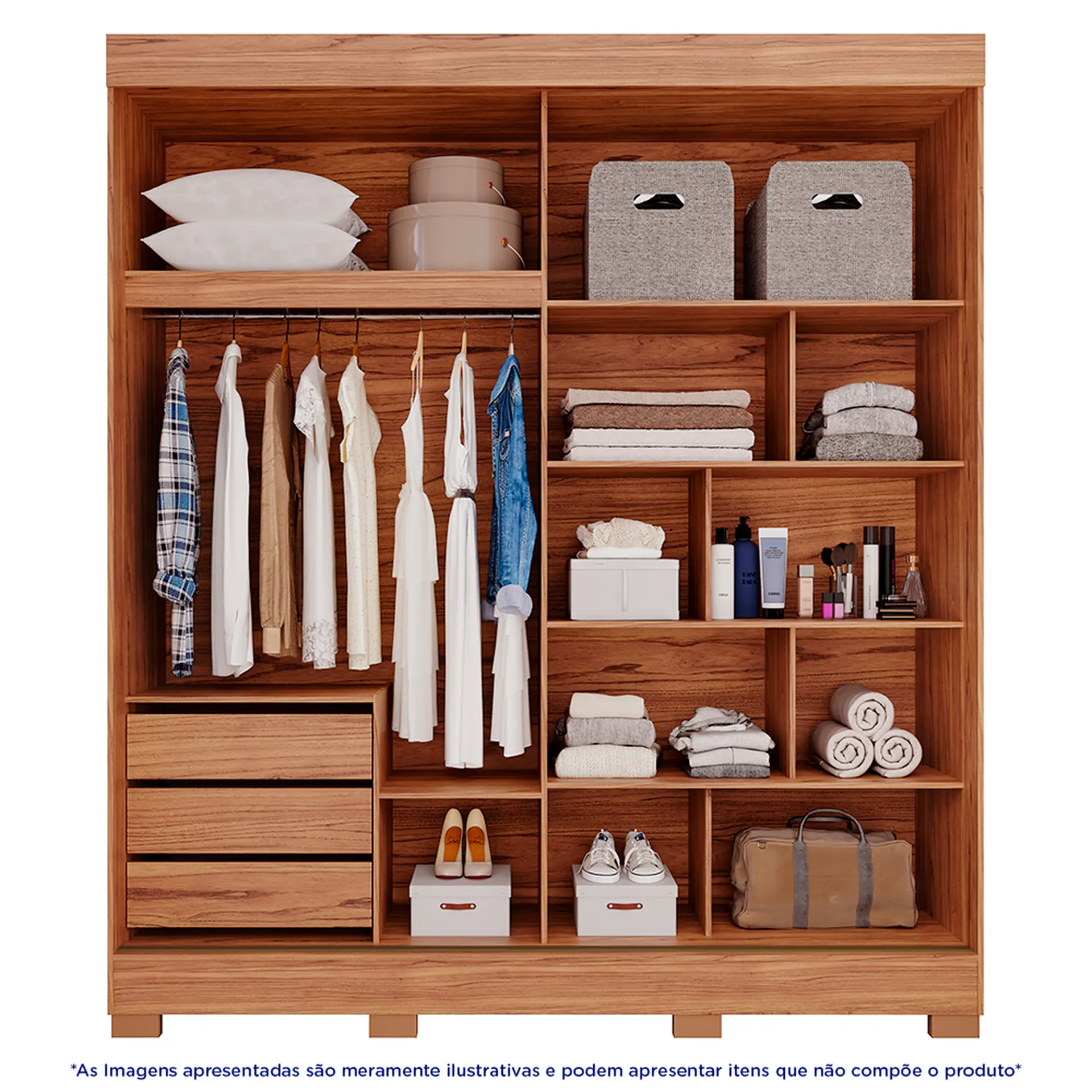 Guarda-Roupa Casal 3 Portas Correr 4 Gavetas Búzios Panan Roupeiro - Jequitibá