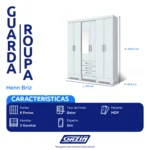 7 es Guarda-Roupa Casal 6 Portas Bater 3 Gavetas B23 Briz Roupeiro – Branco Cód.