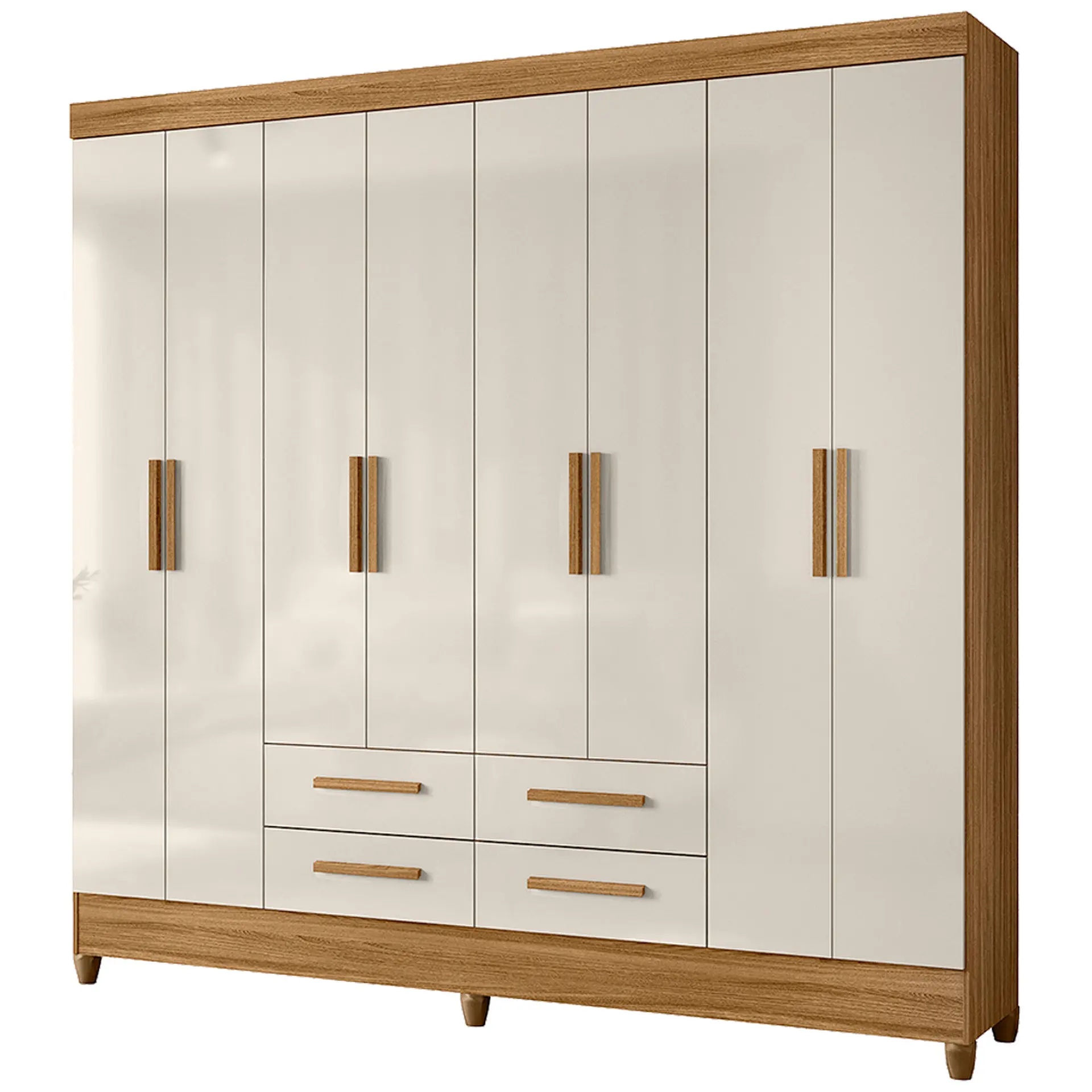 Guarda-Roupa Casal 8 Portas Bater 4 Gavetas Flórida Moval Roupeiro – Freijo/Off White
