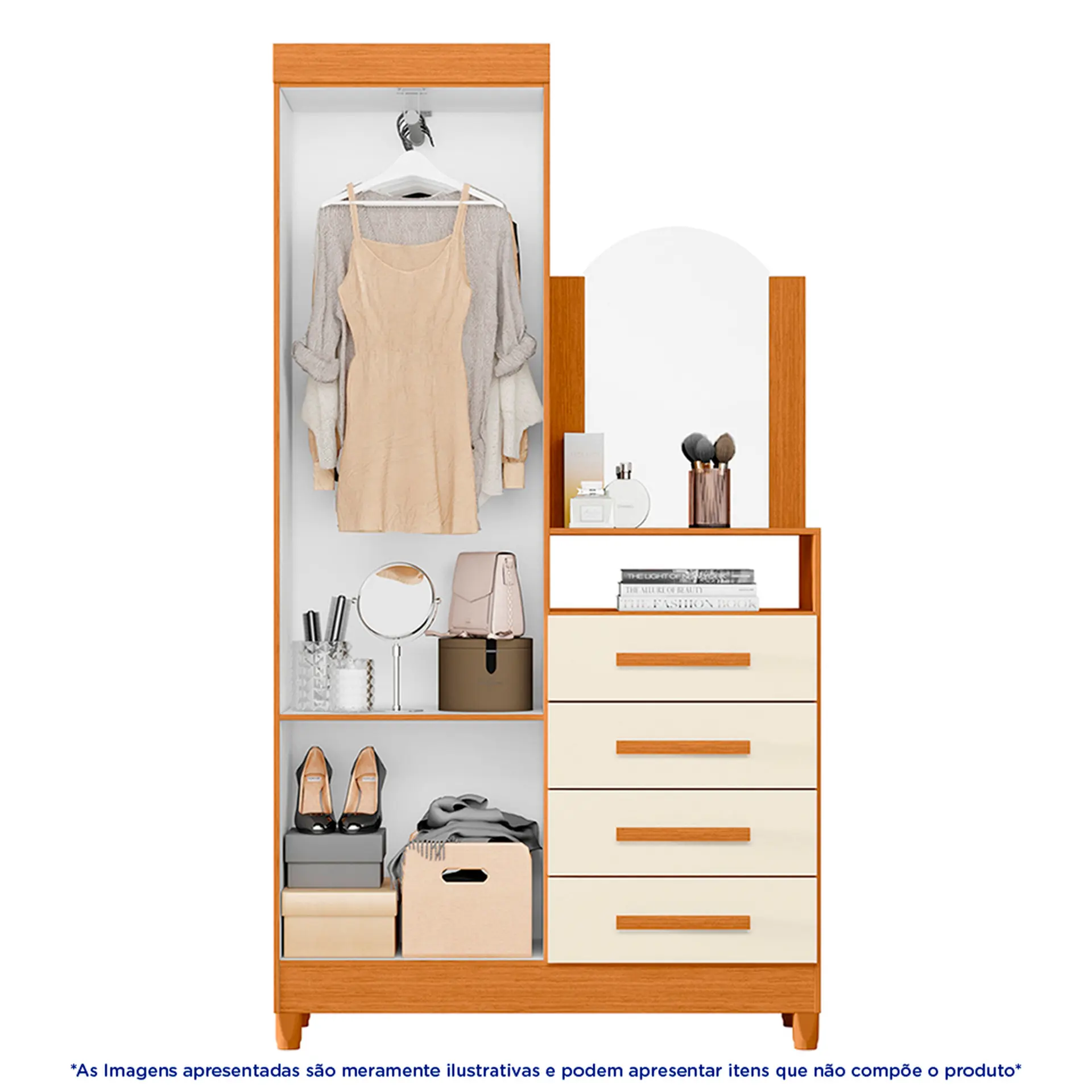 Um único produto, várias soluções para o seu dia a dia! Se você tem pouco espaço, e precisa manter suas roupas e calçados organizados, mas não abre mão do seu cantinho para se maquiar, o