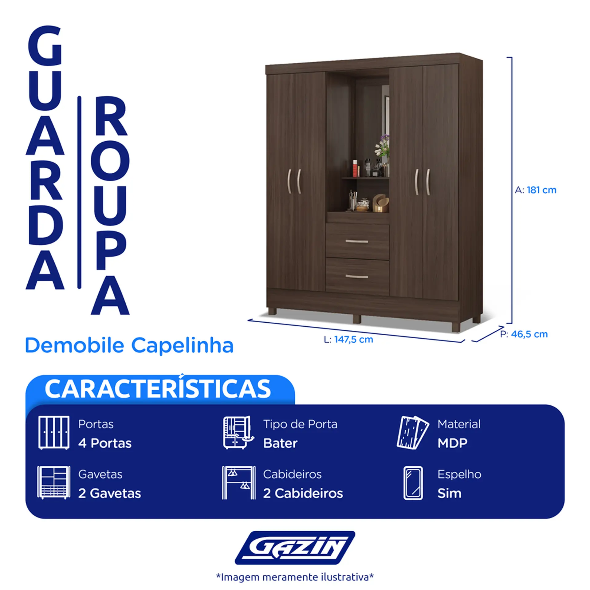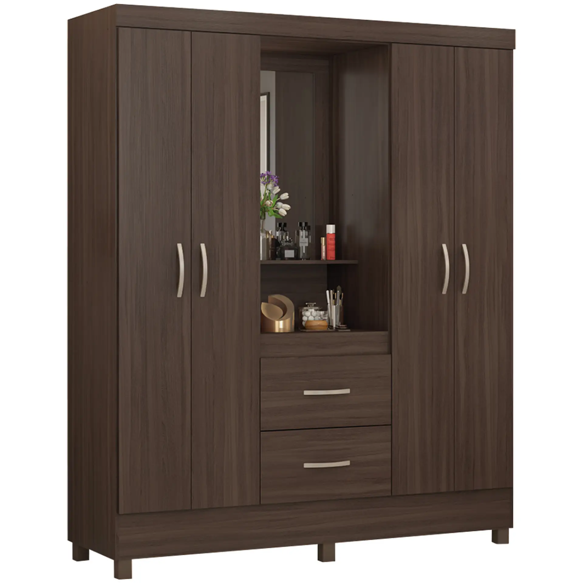 Início Moveis Guarda Roupa Guarda-Roupa Solteiro 4 Portas Bater 2 Gavetas Capelinha Lord Demobile – Café Touch