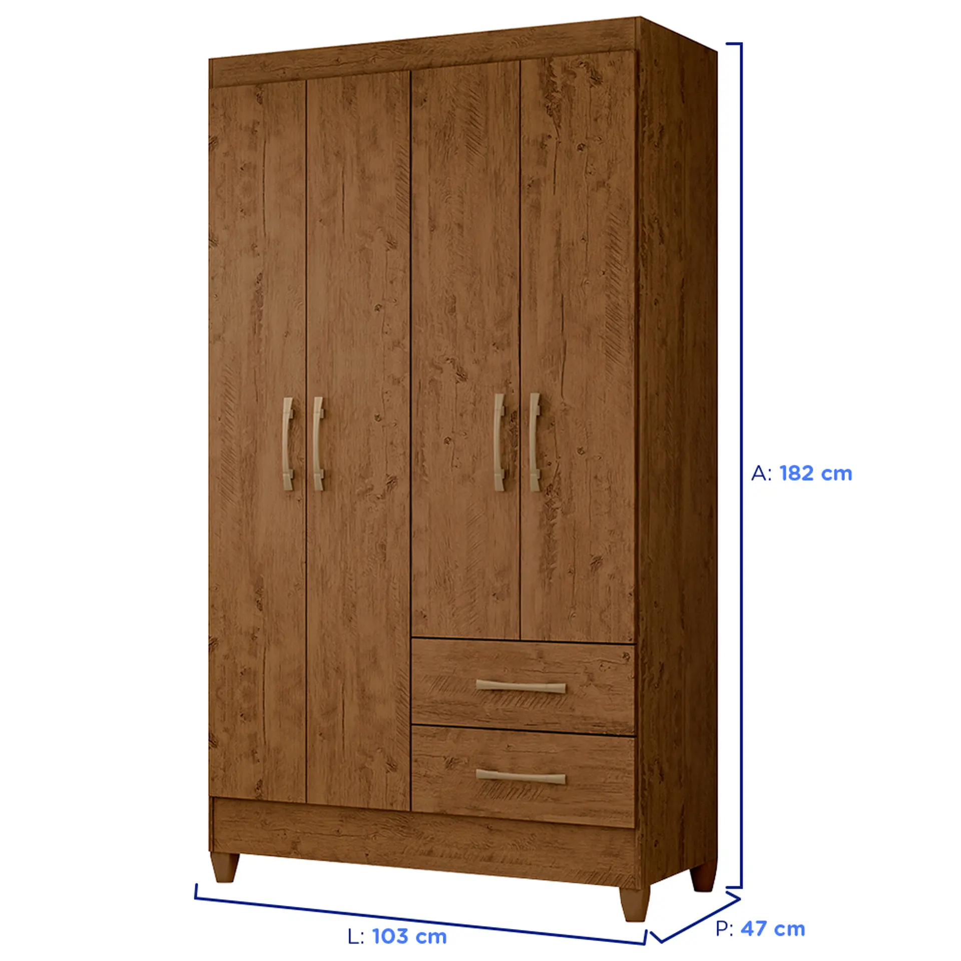 Guarda-Roupa Solteiro 4 Portas Bater 2 Gavetas Chile Moval – Castanho