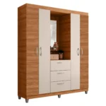 Guarda-Roupa Solteiro 4 Portas Bater 3 Gavetas Capelinha Clapton Caemmun – Freijo Ripado/Off white