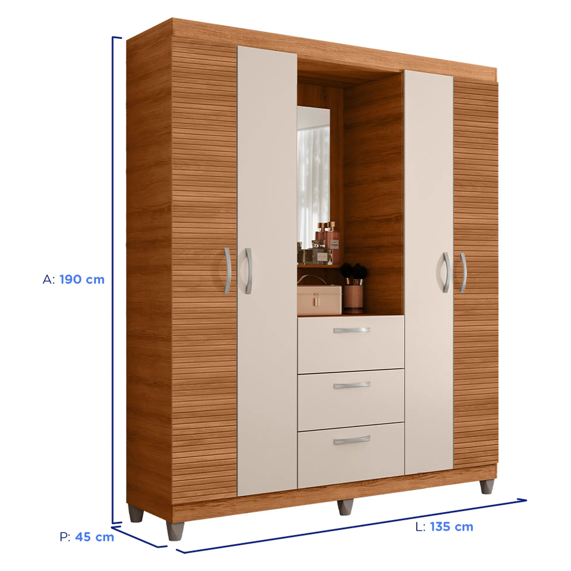 Com 3 gavetas, 1 cabideiro e prateleiras bem distribuídas, é perfeito para manter roupas, calçados e acessórios sempre organizados.