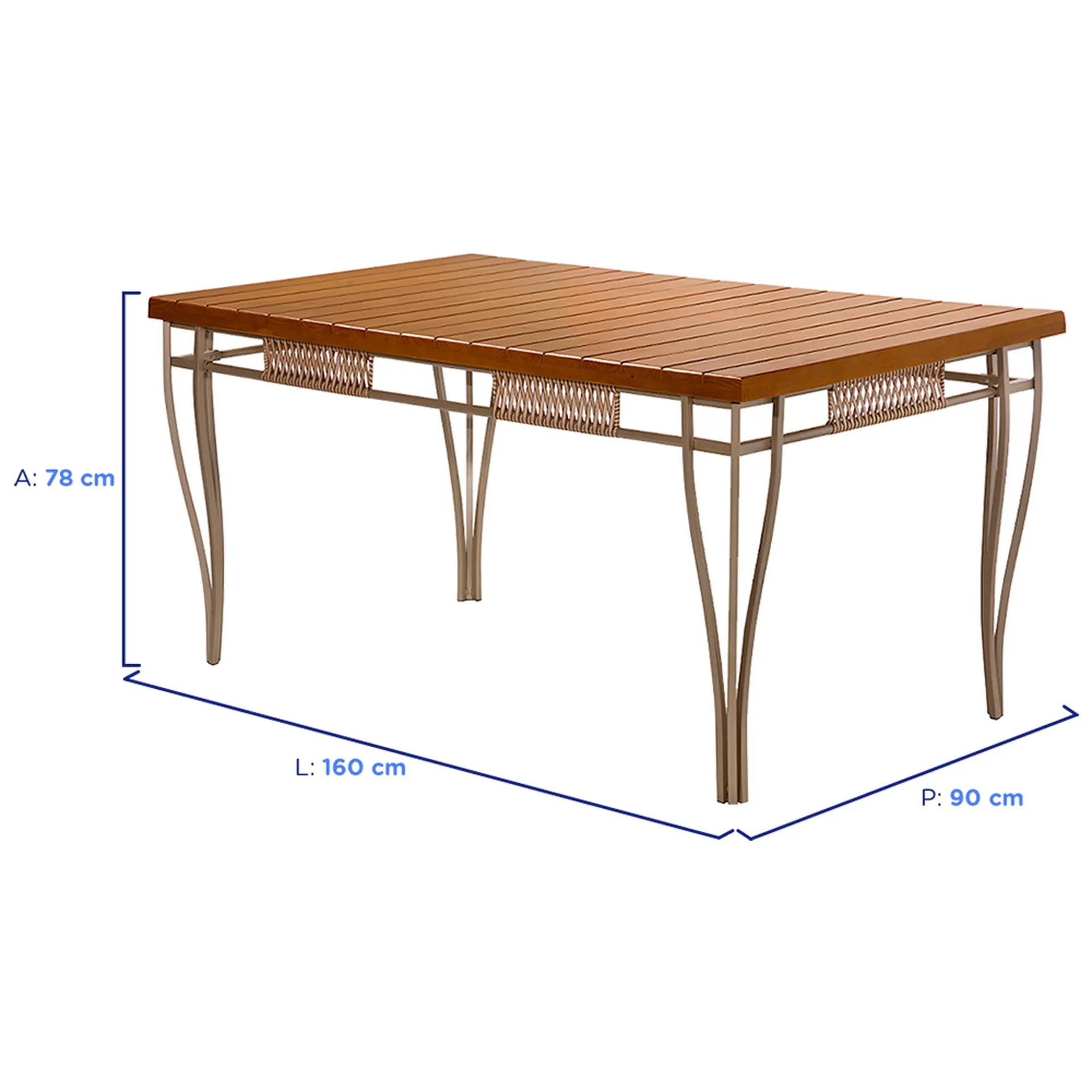 Mesa de Jantar 6 Lugares Tampo de Madeira Geane Aço Nobre – Bege