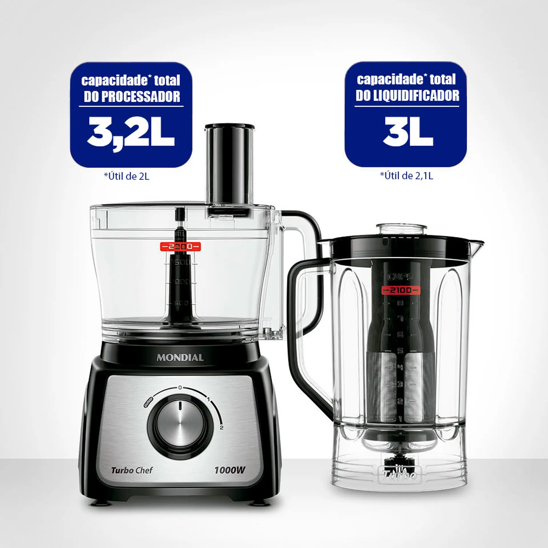 Multiprocessador Mondial Turbo Chef 1000W com Liquidificador MPN-01-BE – Preto – 110 Volts