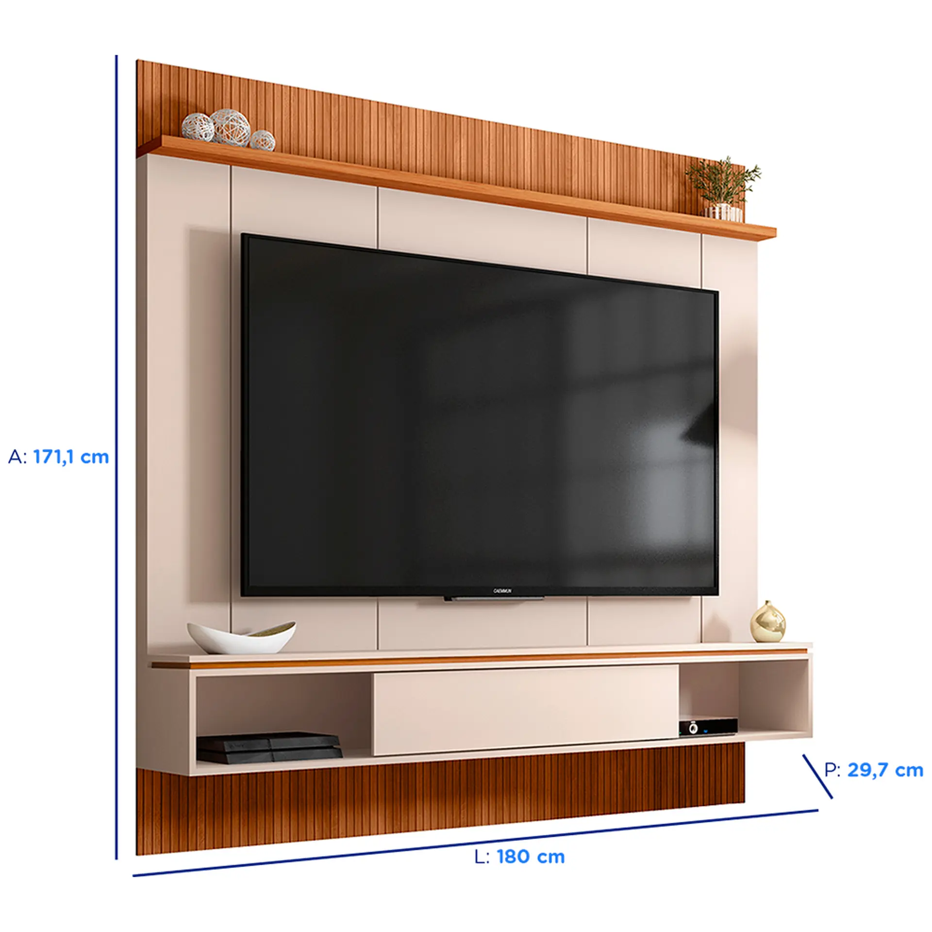 Painel para TV até 65″ com Nicho Vênus Caemmun – Off White/Freijó