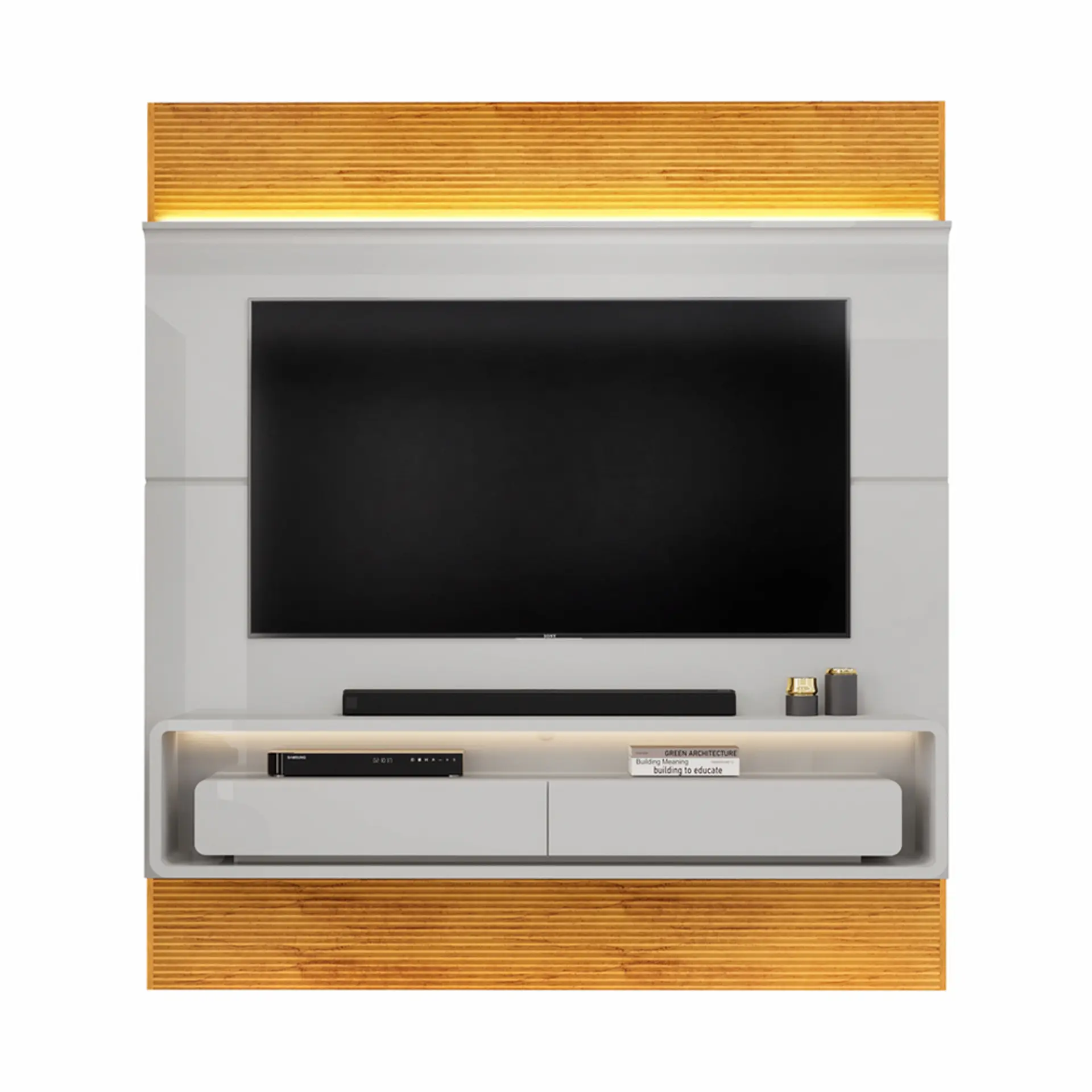 , este painel proporciona um ambiente elegante e organizado para seus momentos de lazer.