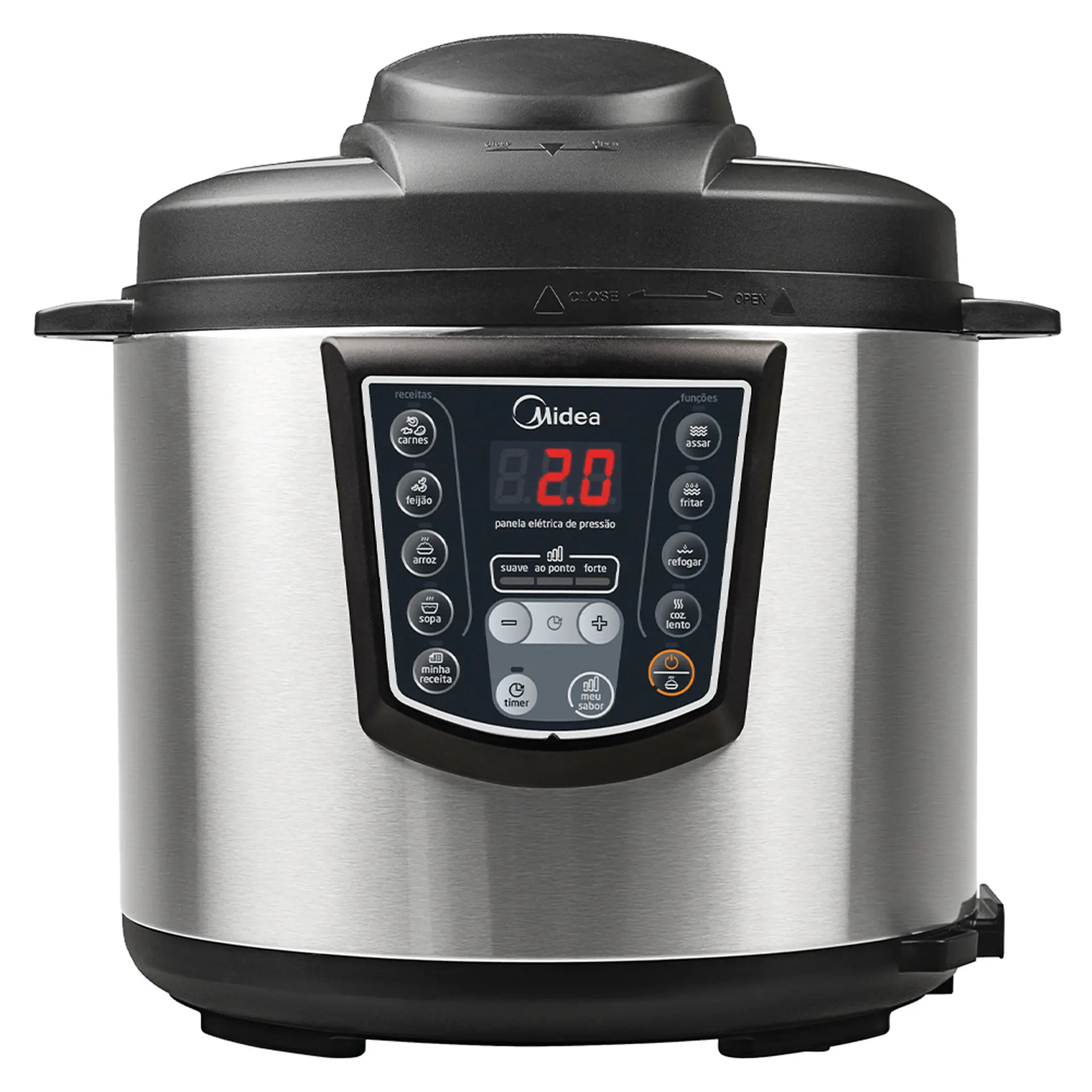 Panela Elétrica de Pressão Midea Liva 6L Timer e Display Digital PPA7 – Inox/Preto – 220 Volts