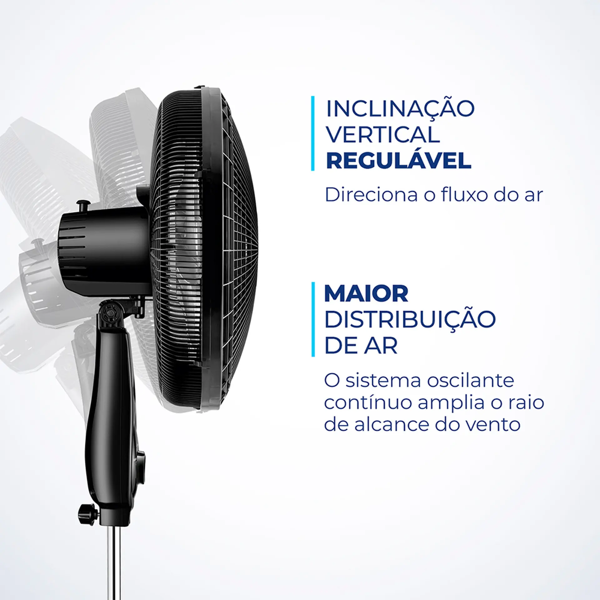 O Sistema Oscilante Contínuo amplia o raio de alcance do vento no ambiente, permitindo uma distribuição de ar mais eficiente nos cômodos da casa.