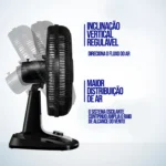 Ventilador de Mesa Mondial 40cm 8 Pás 3 Velocidades 140W VTX-40-8P – Preto/Prata – 220 Volts